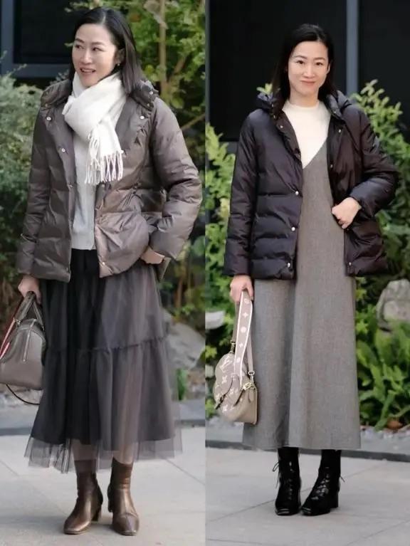 選擇短款羽絨服的時候,儘量搭配H型的設計。對於40+女性身材的臃腫厚實,可以起到一定的裝飾性。這種H型的短款羽絨服,包容性也更強。