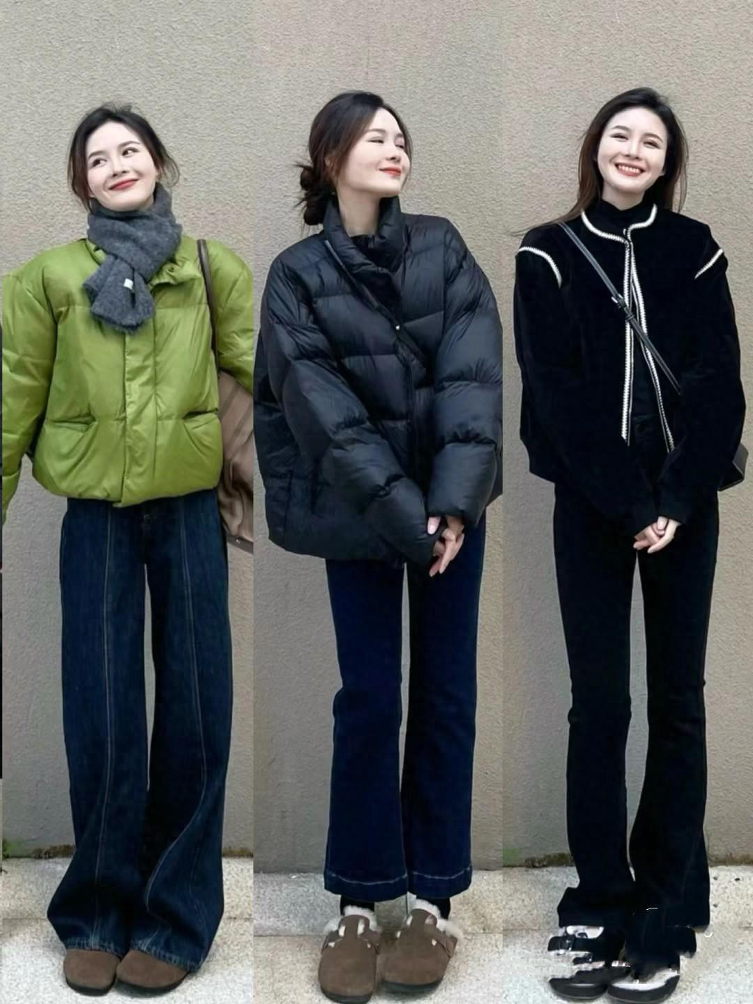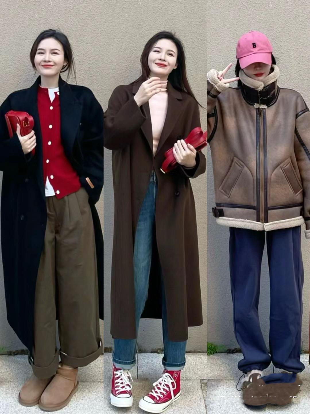 我們可以選擇比較修身的打底衫,來掩蓋上身線條的粗壯和厚重。即便是形體有一點不足,也可以通過寬鬆的外套、棉服、羽絨服來掩蓋。
