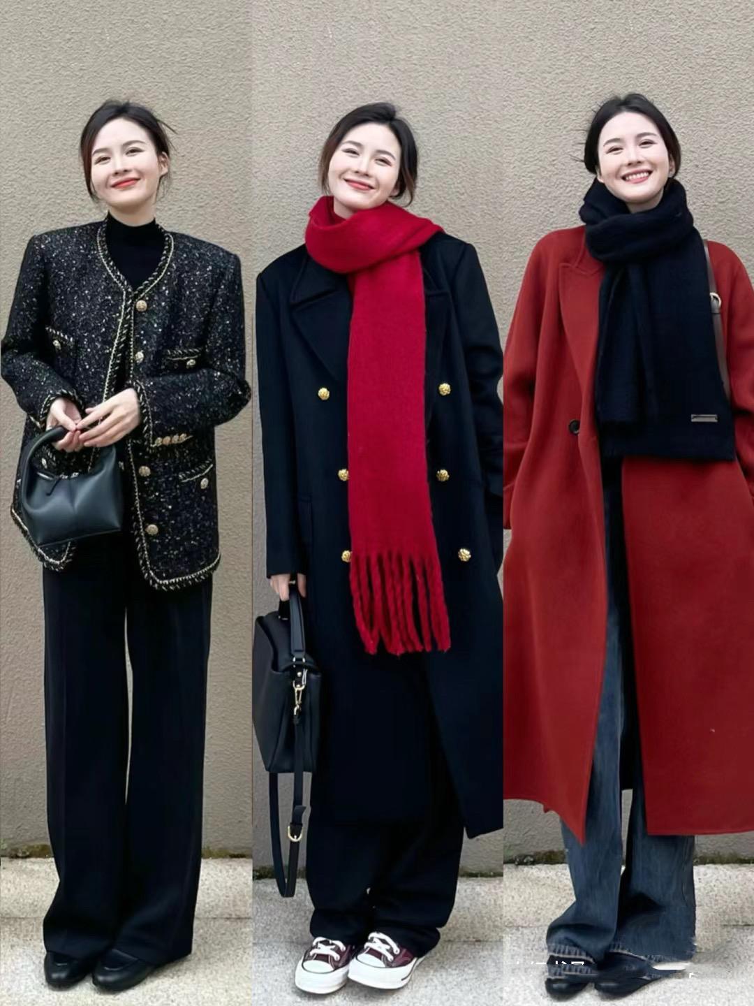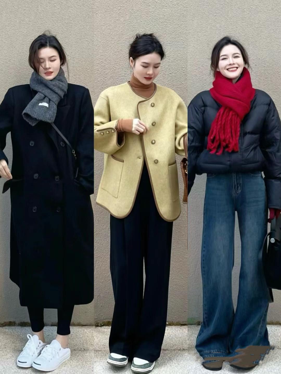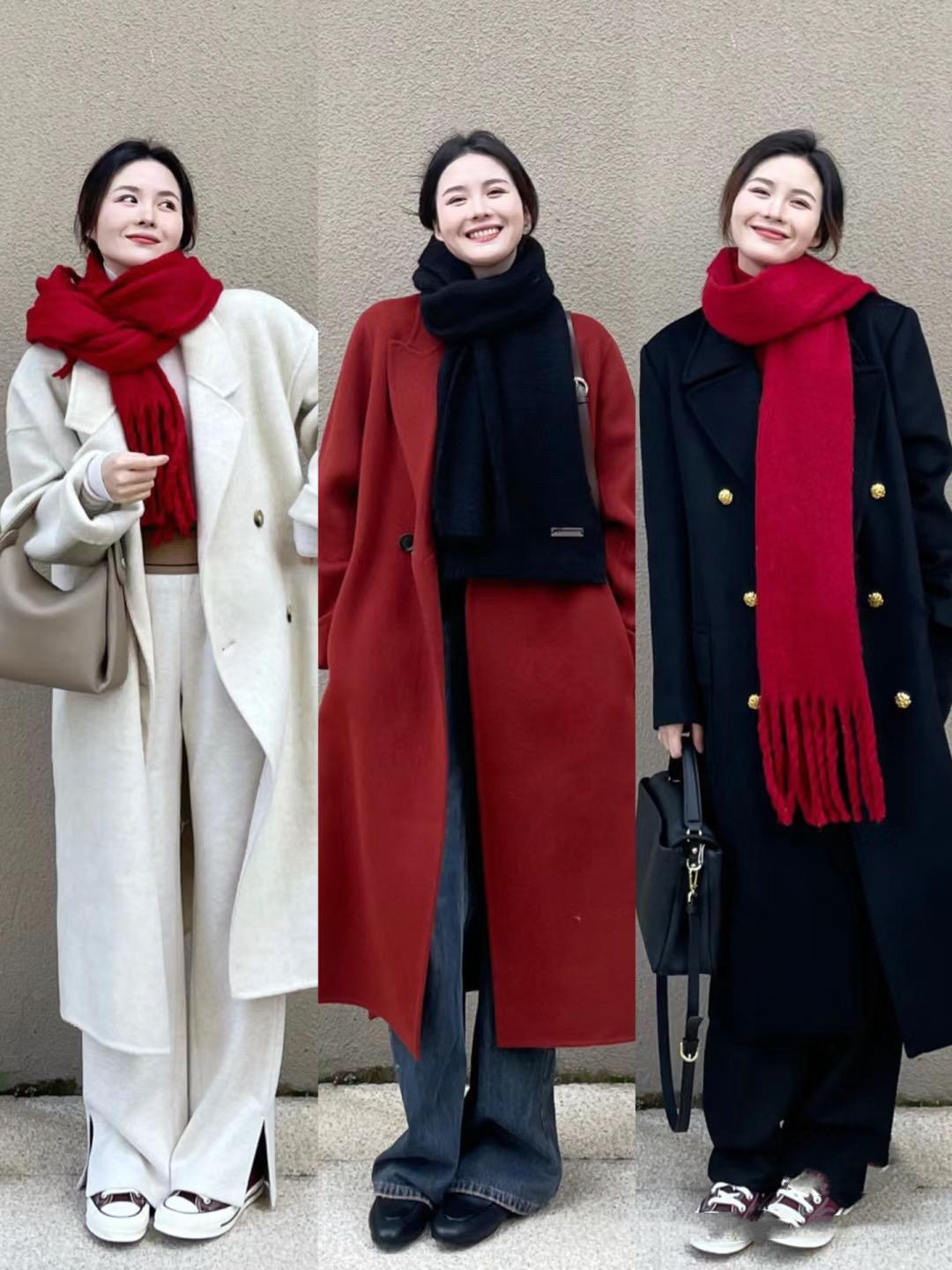 我們穿修身的打底衫,搭配高腰的闊腿褲,外出的話披一件雙面呢外套保暖性更強。疊搭軟糯厚重的長圍巾,可以塑造出溫柔大氣的形象,也格外的時尚保暖。