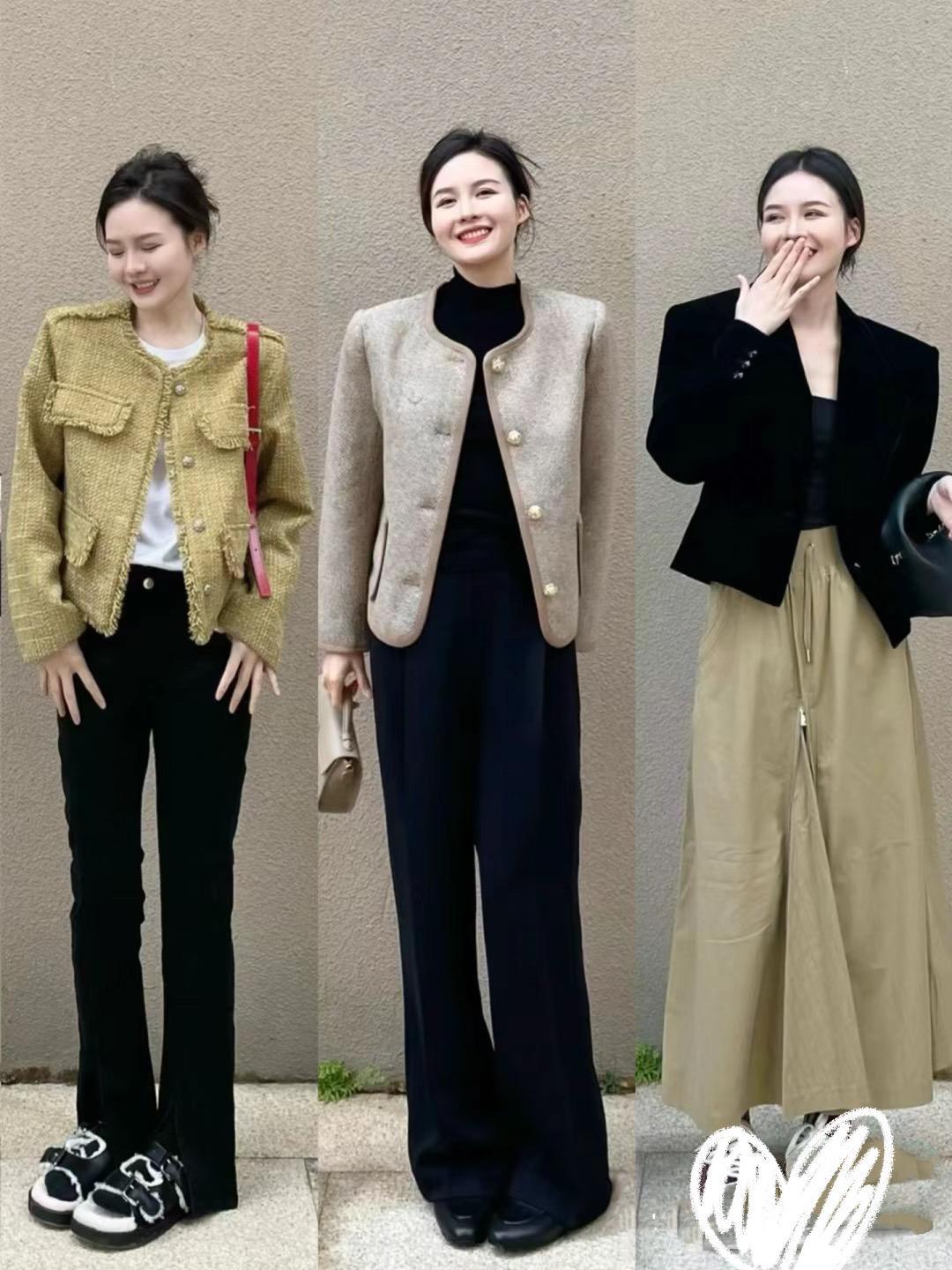 小個子或者梨型身材,以及體型不好、腰粗胯寬的人羣,都可以嘗試穿着“打底衫+闊腿褲”的穿着。搭配不同風格的外套,風格也更加多變。