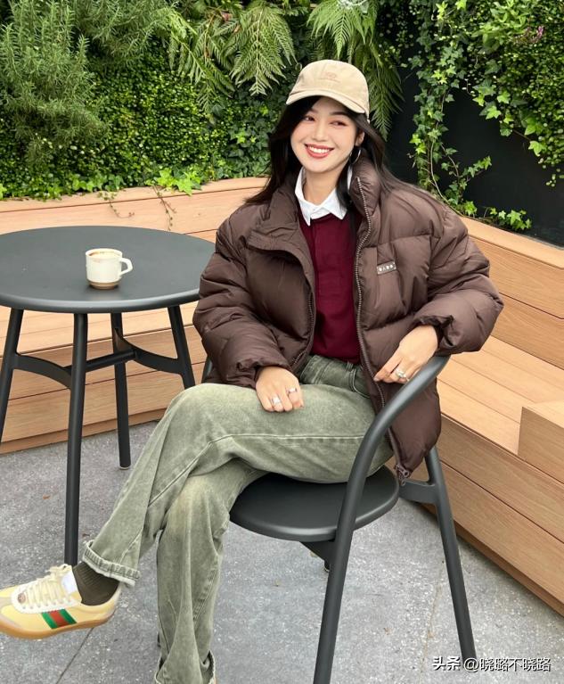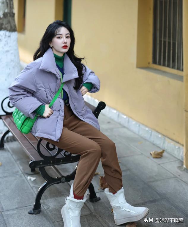 羽絨服整體會更加蓬鬆臃腫一些,所以不建議大家選擇太長的款式,像這種齊腰的短款羽絨服,穿起來會更加利落一些,而且腰線非常高,隨便搭配一條高腰的褲子和裙子就能夠輕鬆的修飾大長腿,順便拔高個子顯得身材比例非常優秀。
