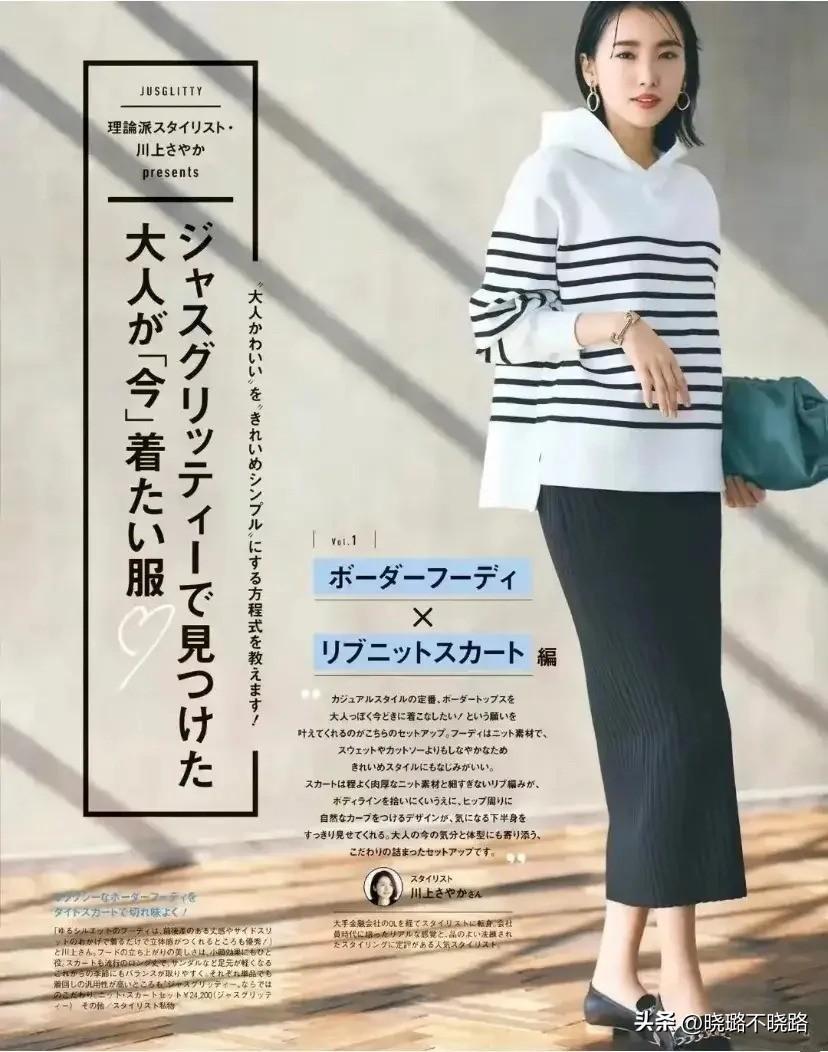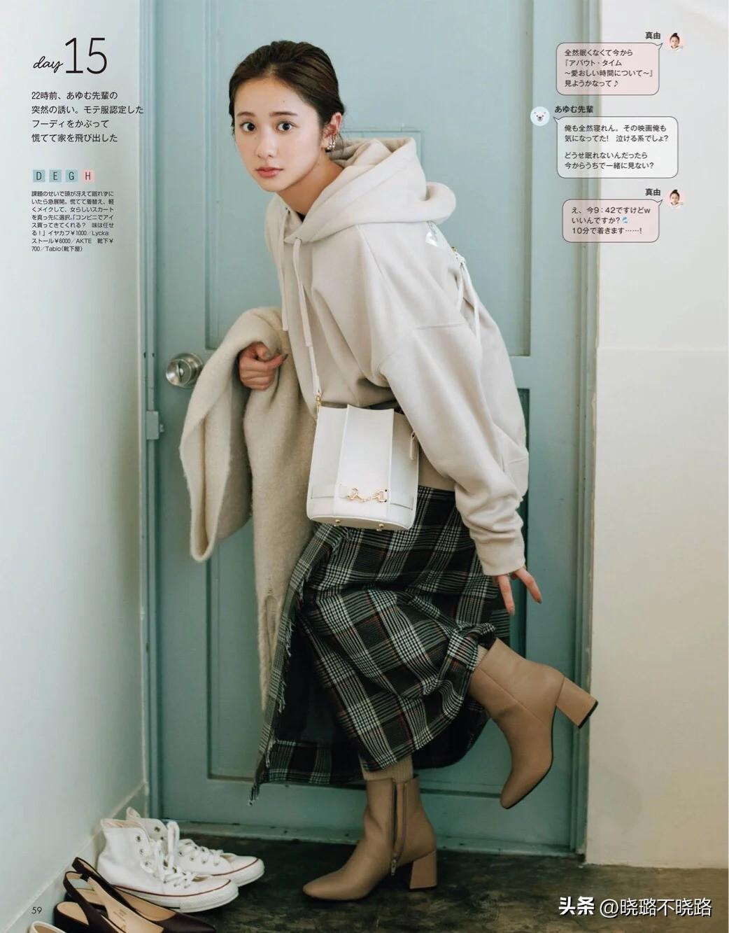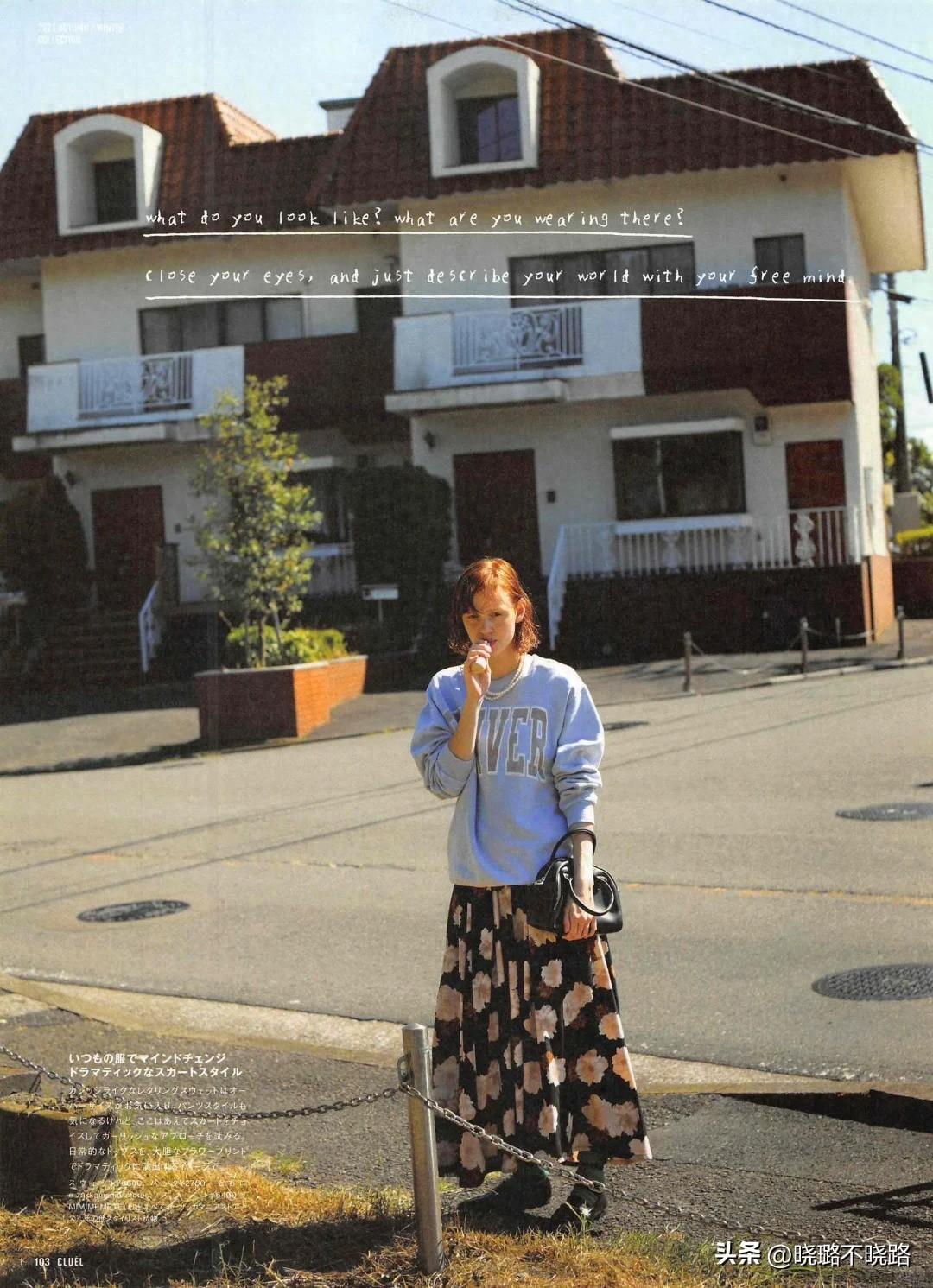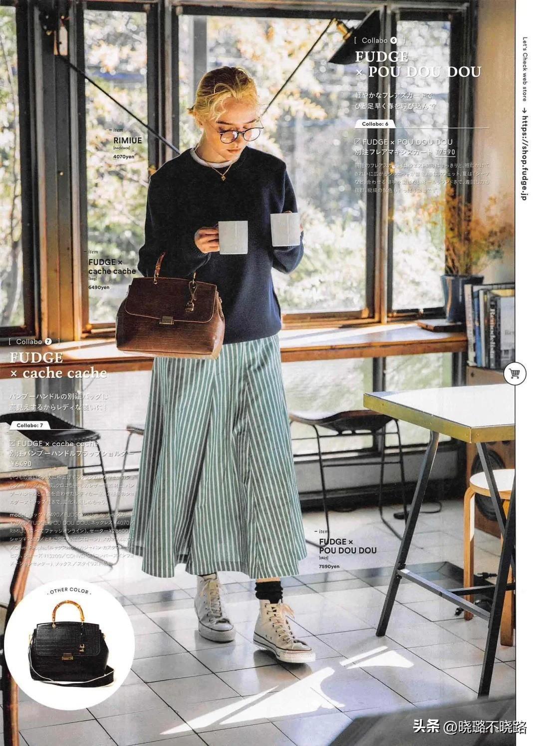 跟着日本雜誌選到適合自己的衛衣和半裙系列,接下來的組合方式我們也可以直接參考日本雜誌。不需要完全一比一復刻,只需要合理運用好裏面的技巧,稍微轉換配色和花紋照樣很顯時尚得體。