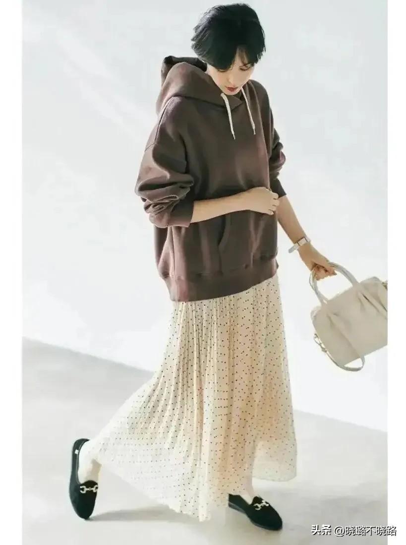 建議中年女人,學日本雜誌這樣穿“衛衣+半裙”,誰見都誇年輕
