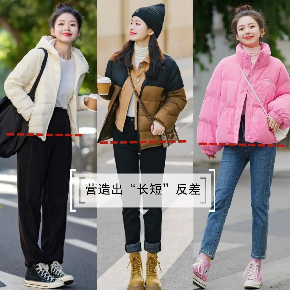 到了早春季節,溫度回升,我們的穿搭也不是那麼厚重了。像這種短款的羽絨服,儘量不要搭配太冗長的闊腿褲,會給人一種拖沓、不利落的感覺。