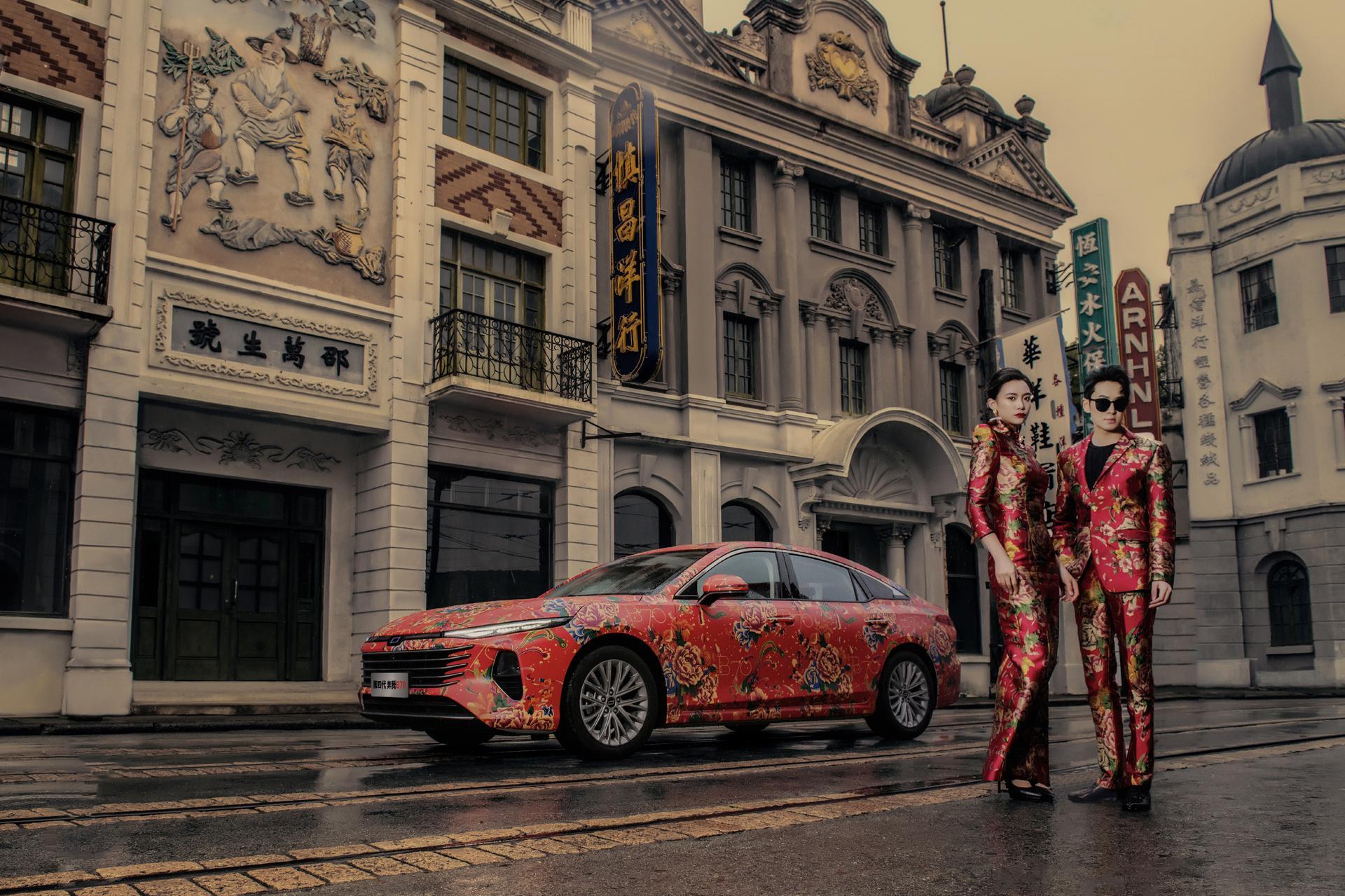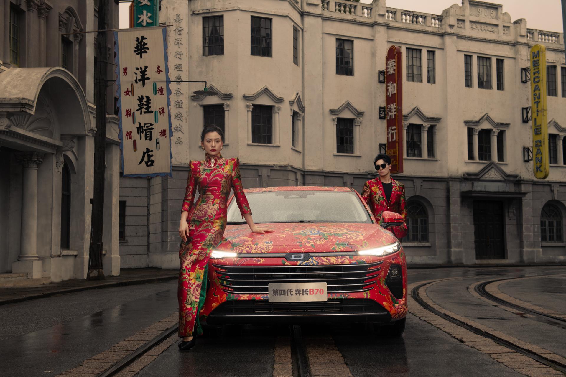 在繁華的上海老街,一輛奔騰B70以獨特的東北大花車衣亮相,成爲街頭矚目的焦點。這款車的設計靈感來源於中國東北地區傳統的大花圖案,經過國際知名設計師的巧妙改造,與現代汽車設計完美融合。