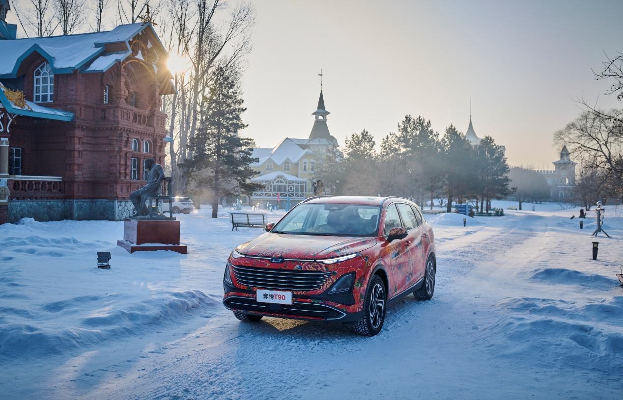 紅色烈焰,奔騰T90閃過爾濱白雪