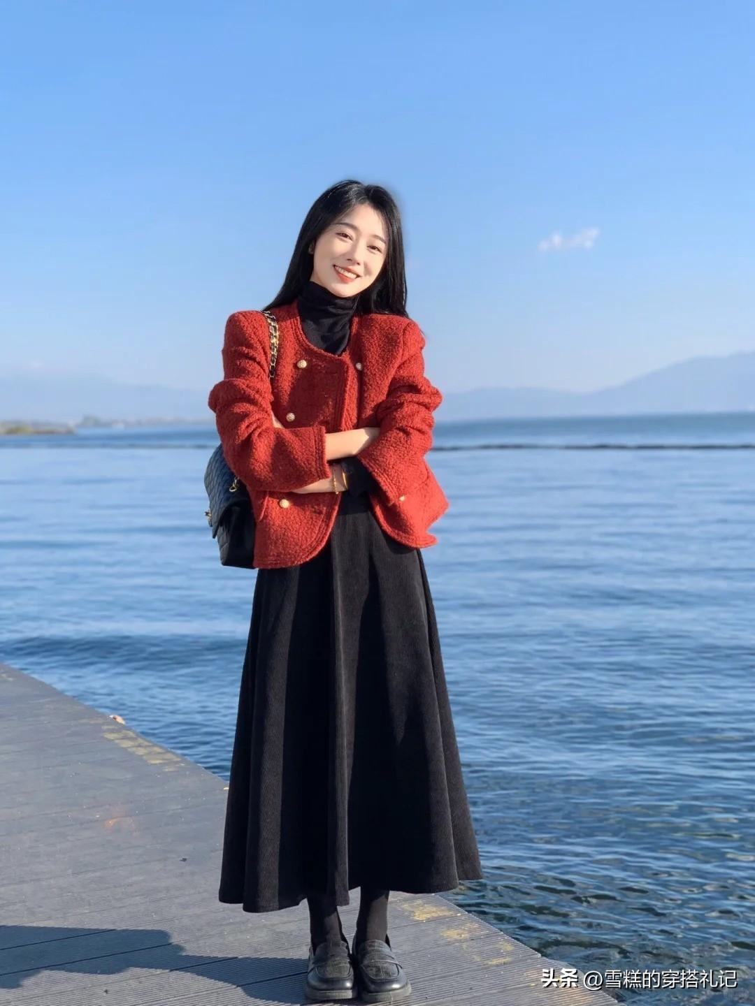 長裙相比褲裝,會更有溫柔知性的女人味道,並且不同的裙子版型還能搭配小香風外套拼湊出截然不同淑女感覺。