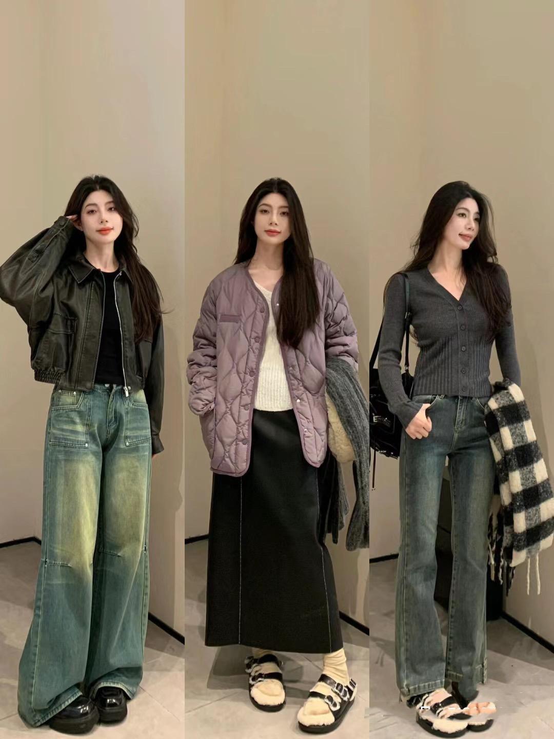 比如高腰的闊腿褲、細膩的打底衫、純棉的白色T恤,都是比較溫柔耐看又顯氣質的單品。像這種高腰的闊腿褲,可以搭配加絨的設計,看似簡單大方又更加溫柔保暖。