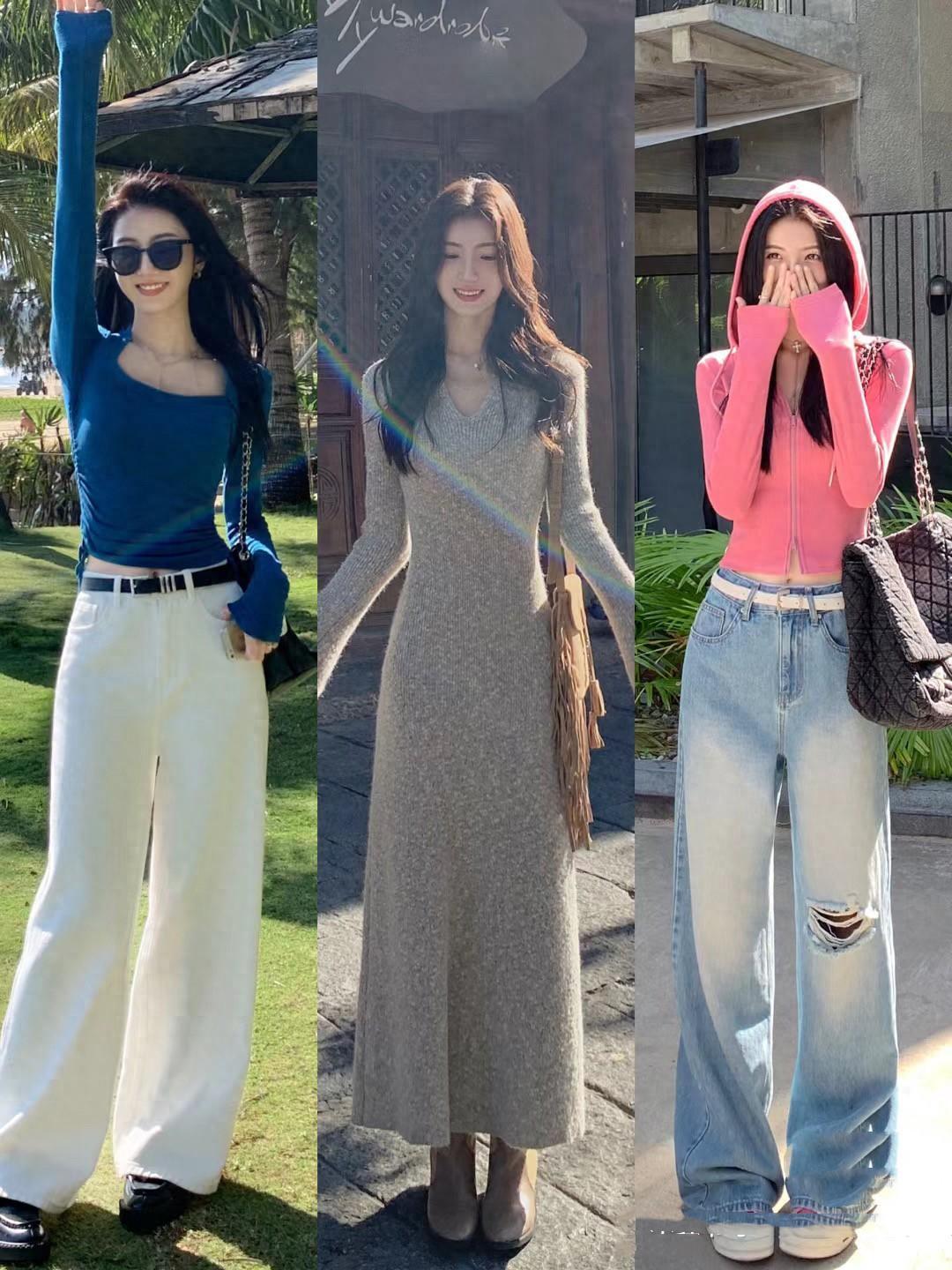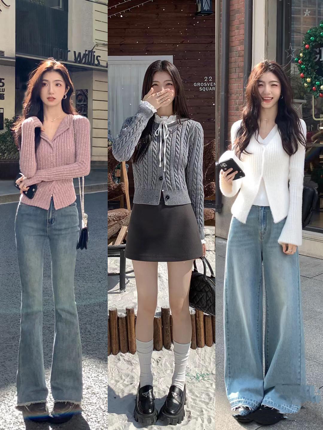 修身的針織衫、收腰的款式,剛好勾勒出優越的上身曲線。像這種修身的針織衫,我們可以搭配A字形半身裙、闊腿褲、或者微喇褲,時髦洋氣。