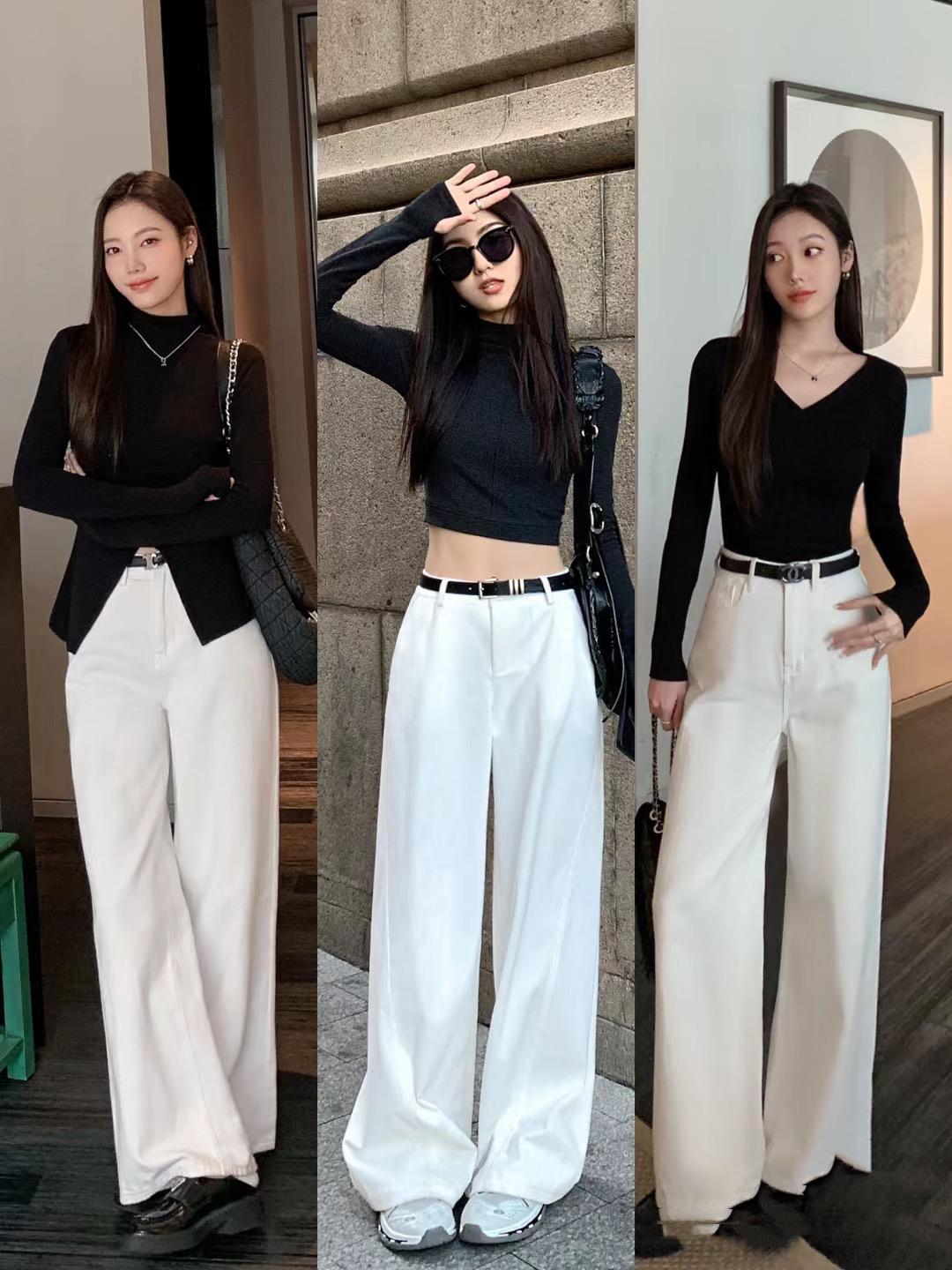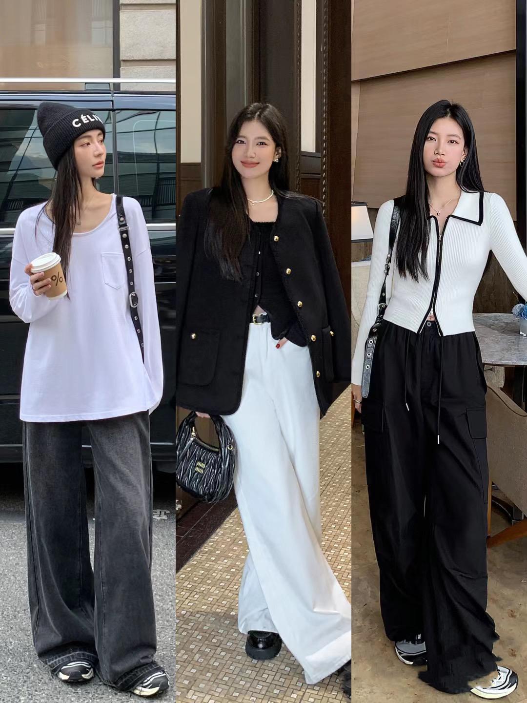 寬鬆的白色T恤,可以搭配大領口的設計,露出頸部和鎖骨的線條,表現出更加纖薄輕盈的美。像這種白色T恤,搭配寬鬆的闊腿褲,舒適自在。別樣的風格、也可以穩居C位。
