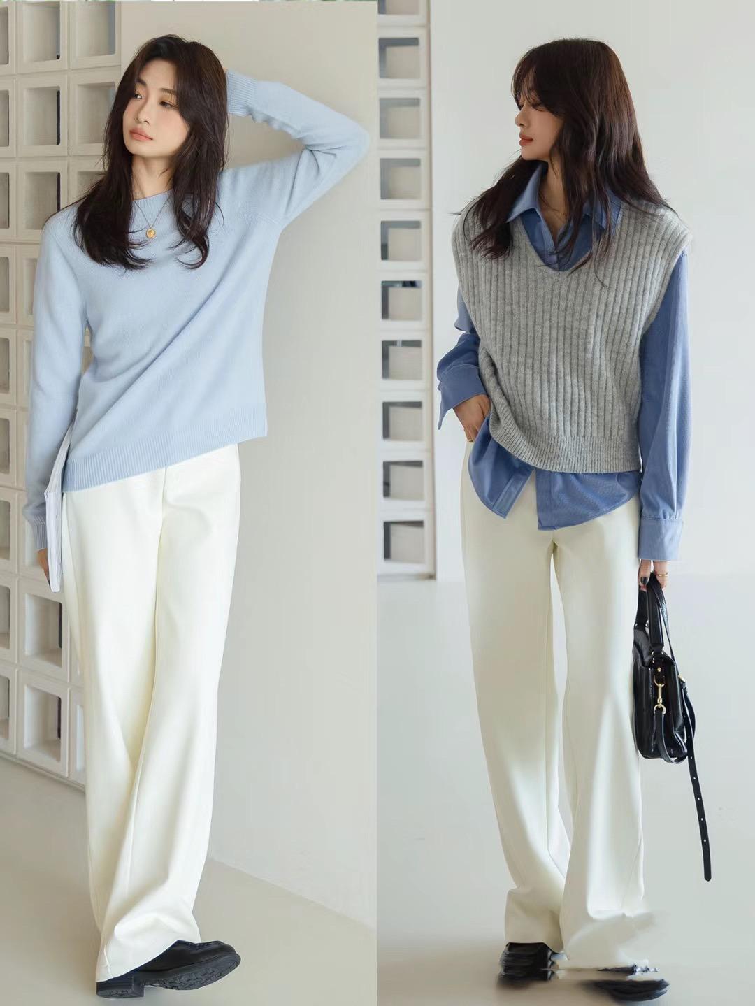 白色褲子,雖然是一種冷色調,卻也擁有一種乾淨大方的美。擔心白色褲子,會顯得清冷。我們可以選擇面料軟糯且加絨的白色褲子。