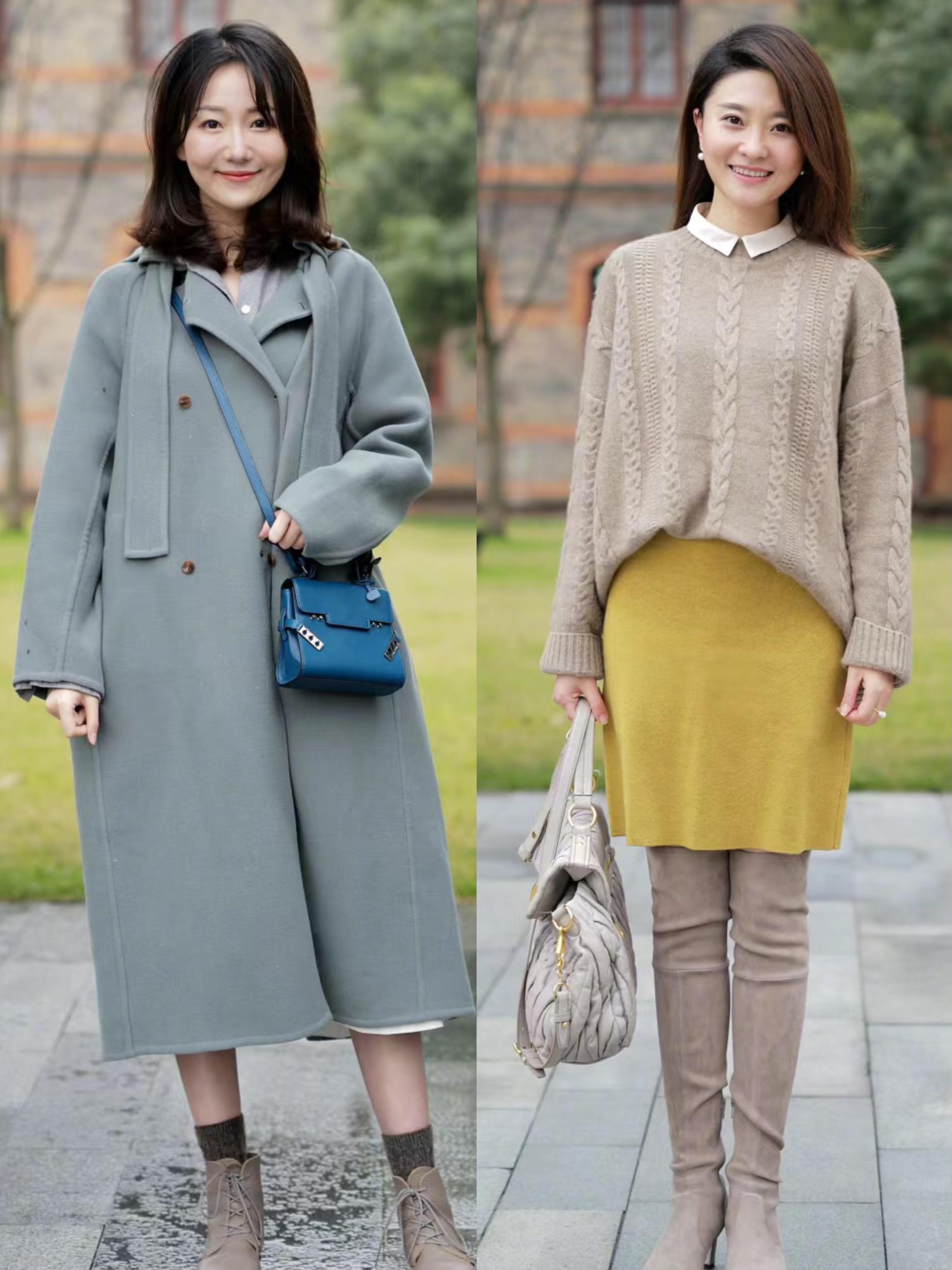 被杭州街拍圈粉了,過年穿大衣從不配高跟鞋,這樣穿時髦又大方
