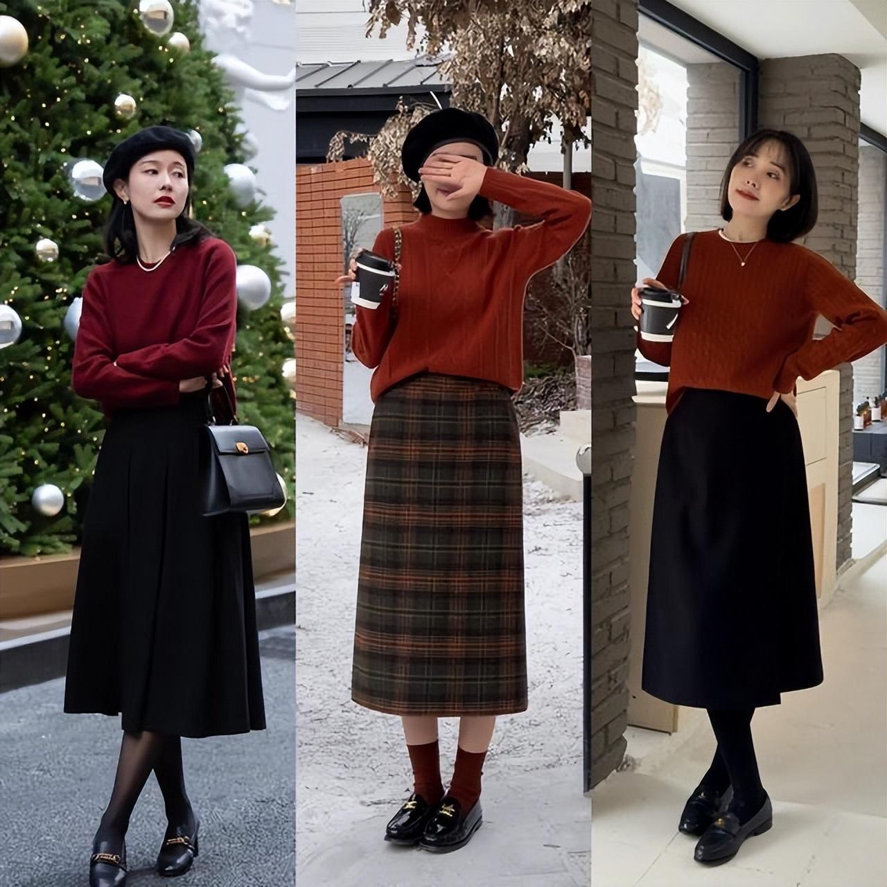 小個子新年穿搭指南:“毛衣+膝下裙”溫柔又顯高,誰穿誰好看