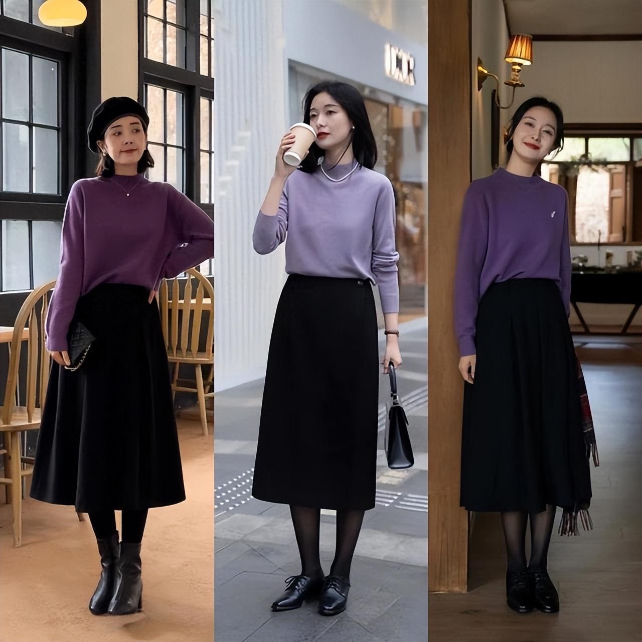 當我們選擇毛衣+半身裙的組合時,首先要選擇適合自己的毛衣。雖然毛衣的款式比較相似,但我們可以利用色彩的變化,塑造出不一樣的時尚氛圍。