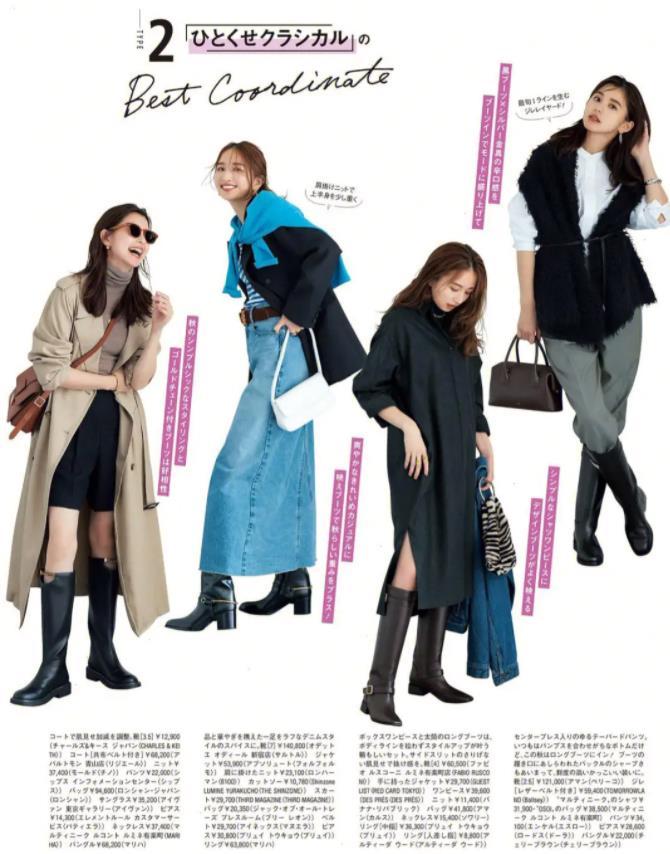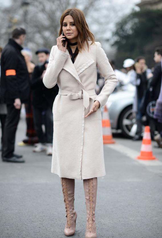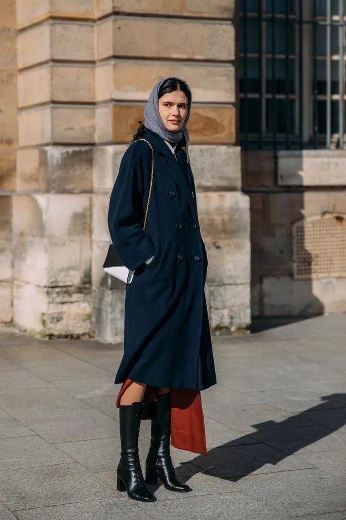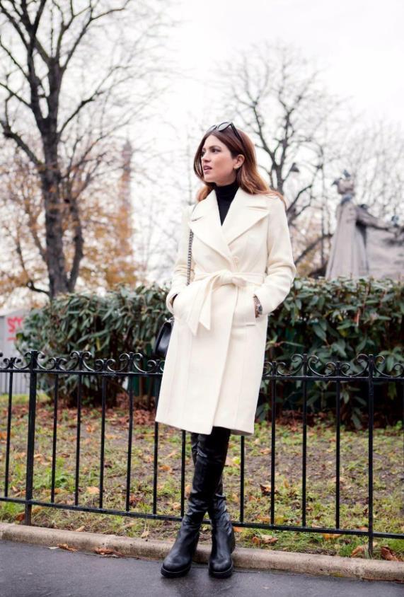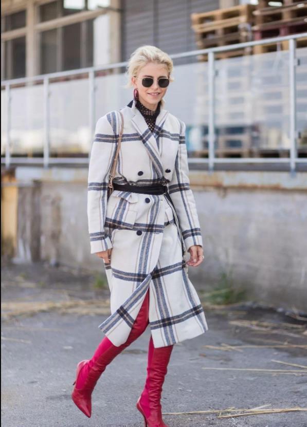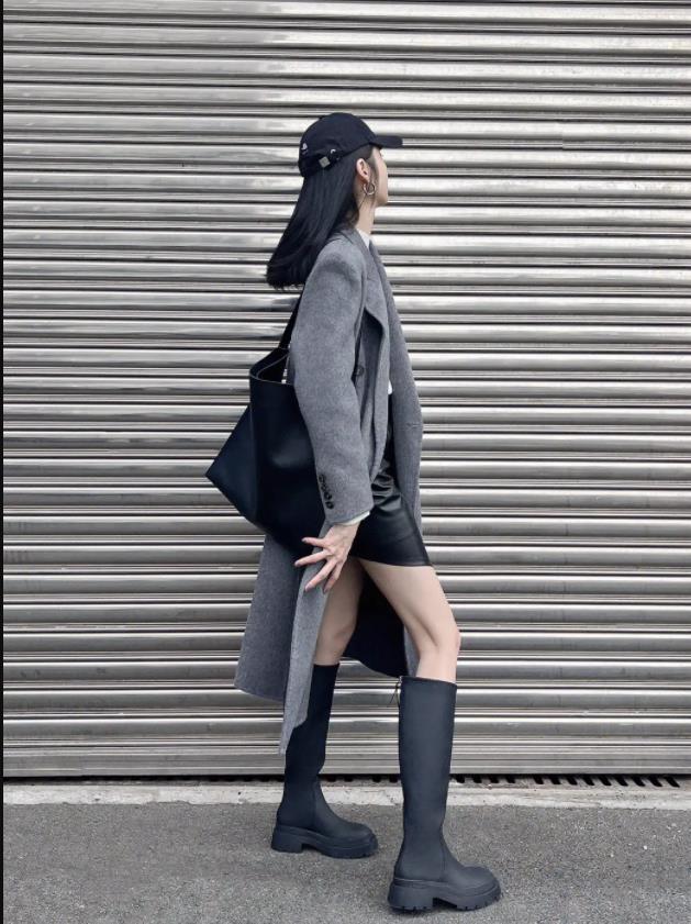 長靴的顏色與大衣要和諧,不能太過於突兀了,經典的黑色長靴、棕色長靴,都是比較百搭的。