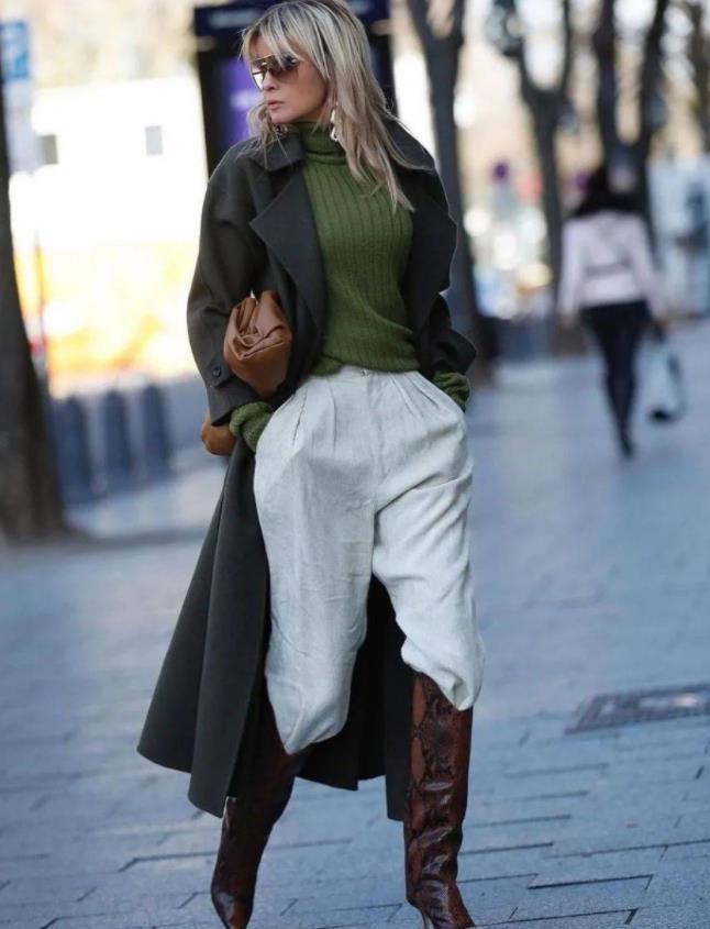 褲子和長靴的組合,既顯瀟灑又帥氣,還十分顯利落,這簡直就是把大女人風演繹得淋漓盡致。