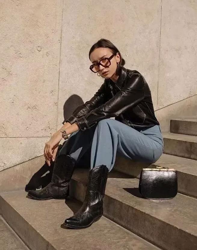 還有一種是西部牛仔靴,這種款式的靴子在今年也是十分流行,它的長度比膝下靴更低。靴型鬆弛,有些還會帶有花紋裝飾。