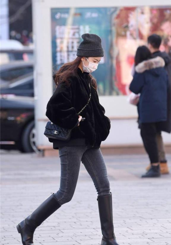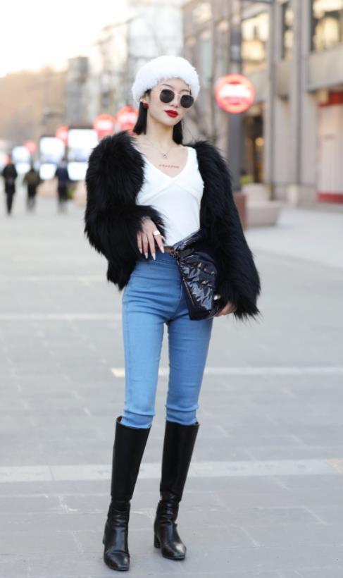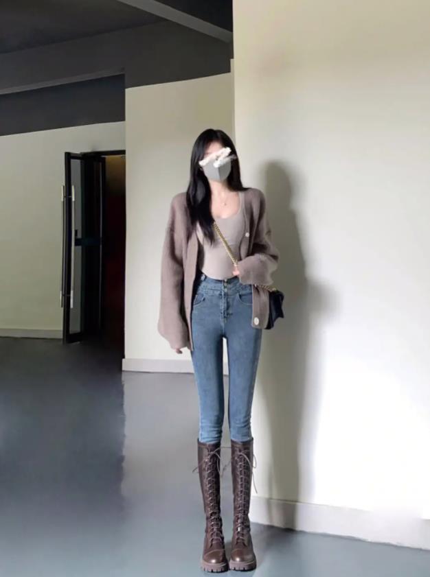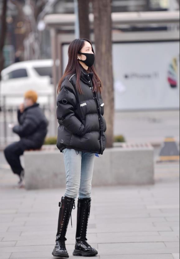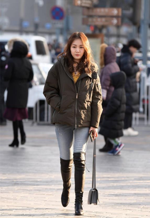 還有長靴+長褲的穿搭,也是很適合寒冬的,特別是配緊身牛仔褲,加上長靴後,就更加保暖了,也能將腿部優勢很好呈現出來。