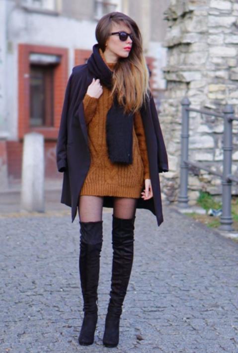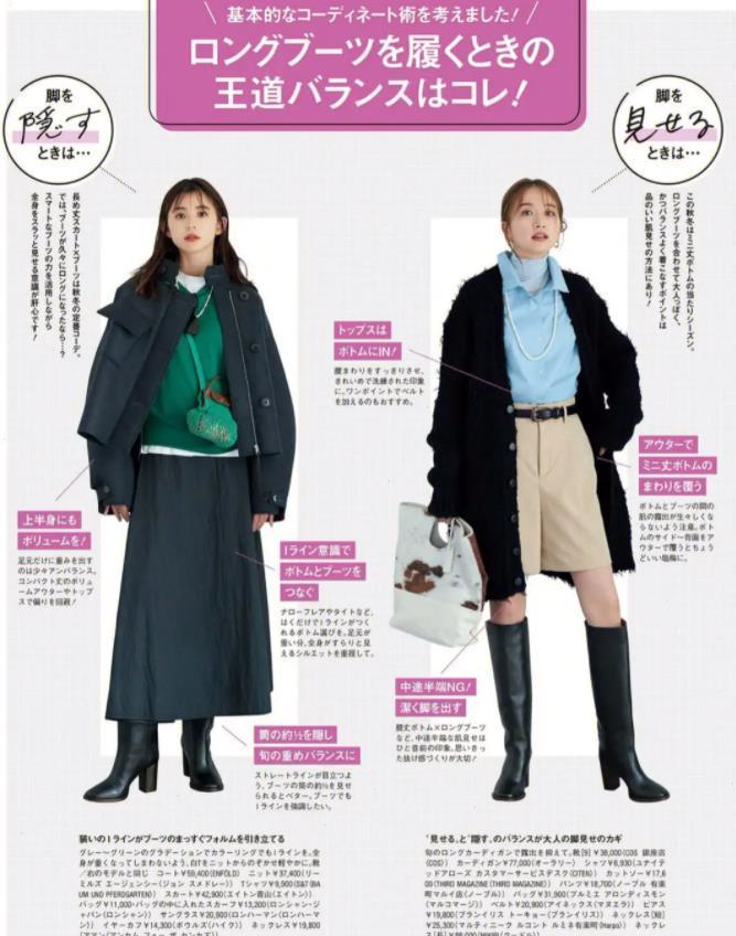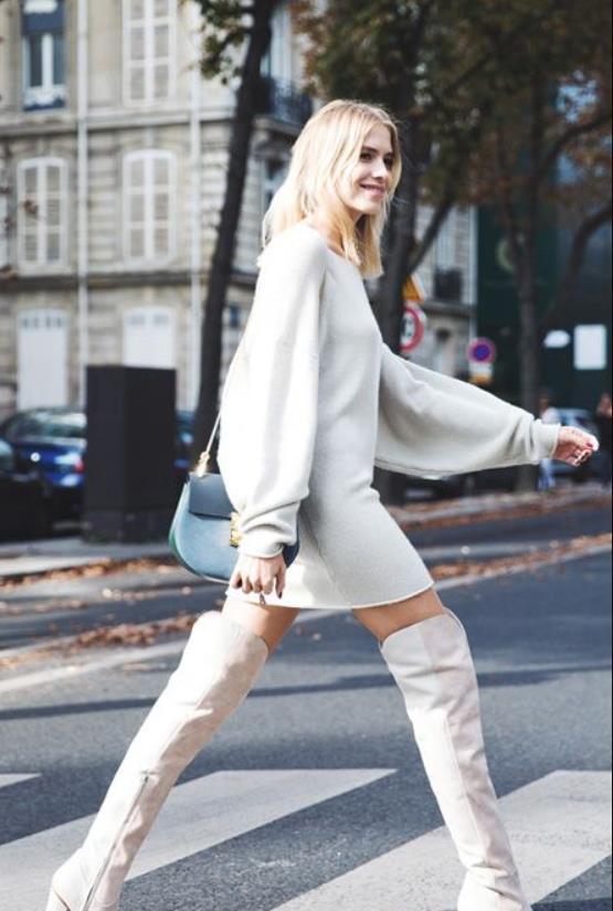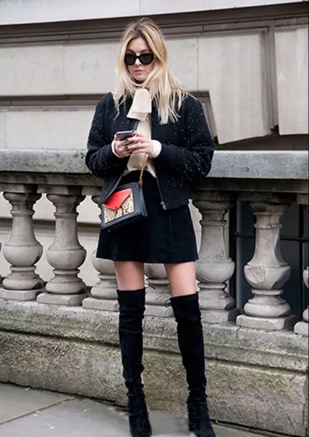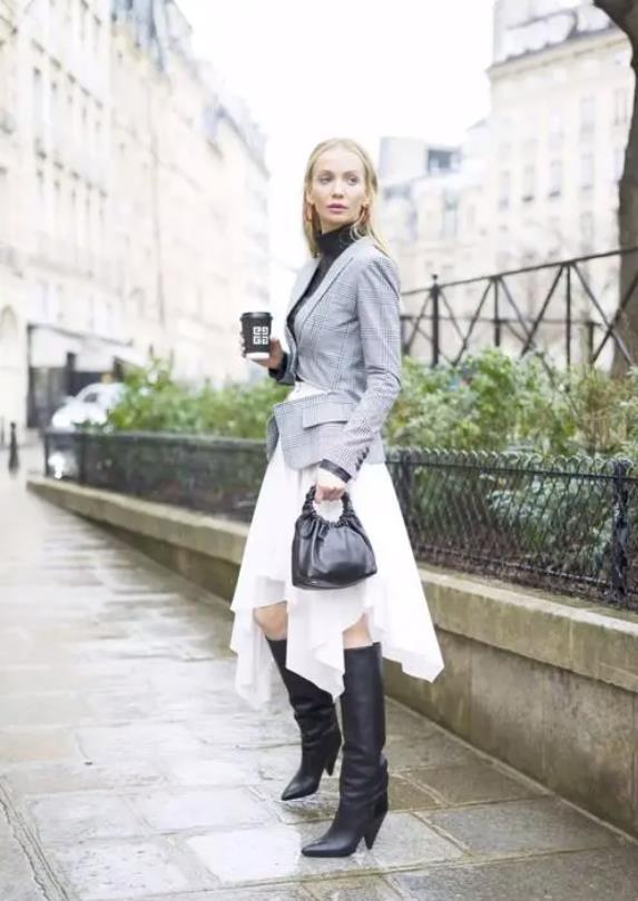 長靴配長裙,或短裙,都是可以的,個矮的女生就可以長靴+半裙,這樣一來就顯得更利落高挑,也不會顯矮。