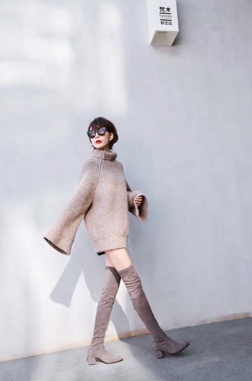 關於長靴的搭配,其實真的不需要考慮太多,大多數的衣服都能與長靴相配,但要注意的是不管是與哪種衣服相搭,都講究鬆緊有度,長短有致。