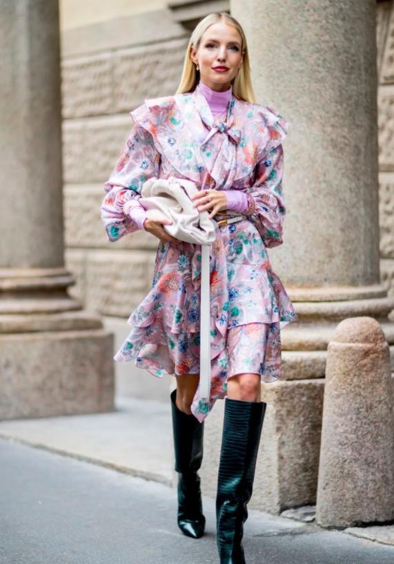 提起長裙和長靴的組合,不由自主就聯想到浪漫,既保留了些許的帥氣,又多了幾分屬於女性的柔美。
