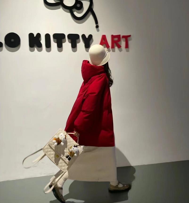 脖子上圍着紅色圍巾進行點綴,保暖又喜慶,很洋氣。