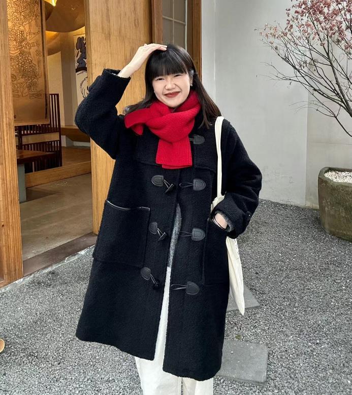 今年牛角扣外套,自帶復古風氣息,寬鬆的版型,上身後能很好隱藏起身上的肉肉,顯瘦極了。