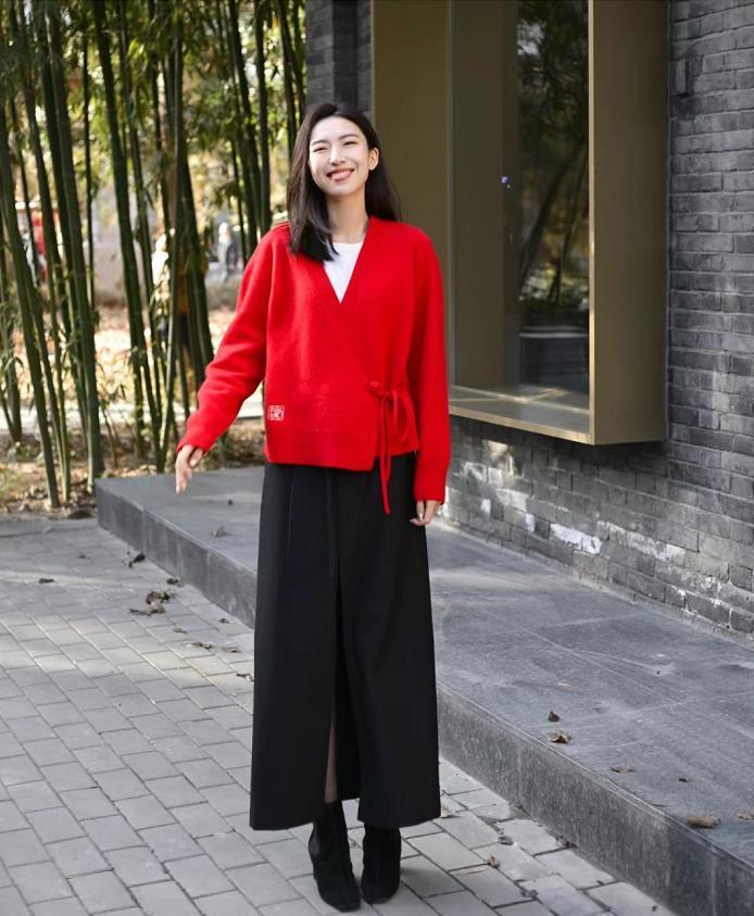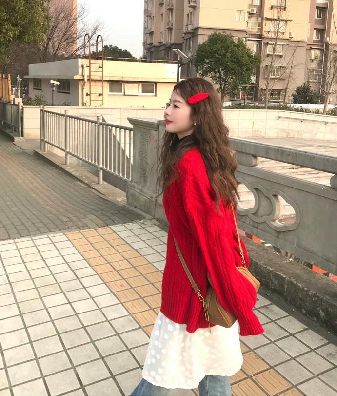過年當然要穿得紅紅火火的啦,紅色毛衣,款式是比較基礎的,簡約又很百搭,進行疊穿,會更時髦顯層次。