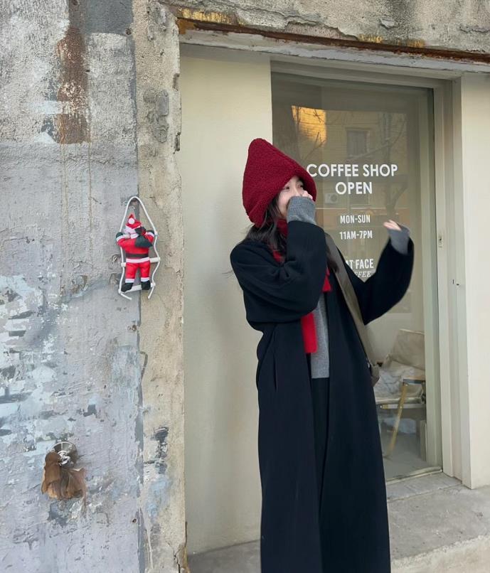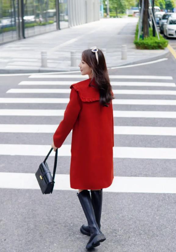 哪怕沒有佔據很多面積,但紅色的圍巾卻能給人帶來一抹喜慶感,洋氣十足。
