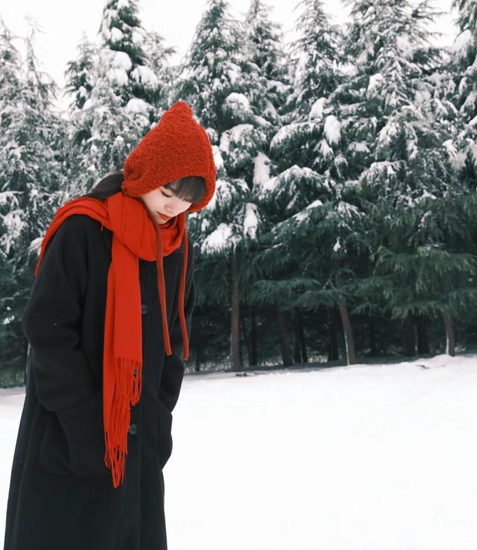 雪地和紅色圍巾好搭,色彩呼應,更時髦出衆,就算穿上黑色大衣也不會顯沉悶。