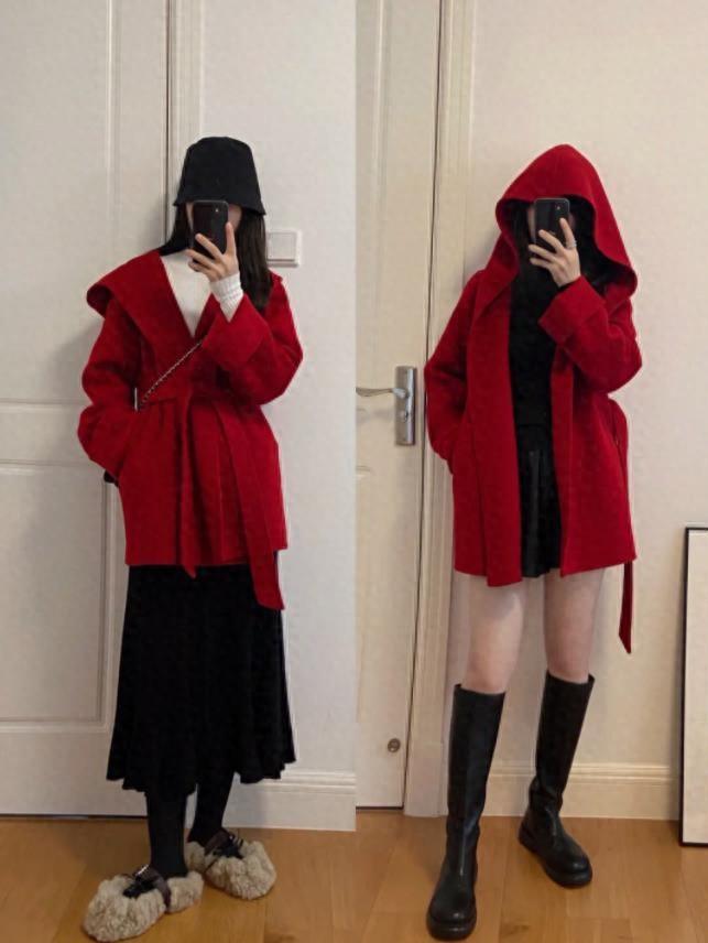 本命年必須穿紅色啊,現在溫度還是有些低,出門一件紅色連帽羽絨服,穿起來真的保暖,還帶些休閒感。