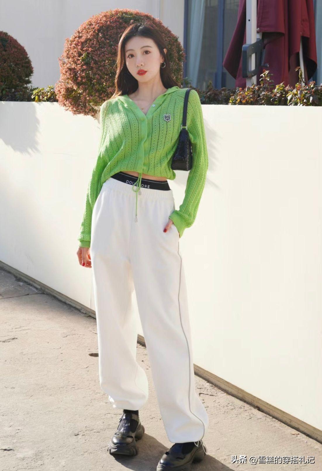 也是非常的建議屏幕前的你在搭配運動褲的時候最初入選就一定要選擇高腰的設計,甚至運動褲的高腰版型會比常規的褲裝更大的偏高一些,這樣的水平位置才足以讓我們的標準比例以及腿型的縱向長度有着非常完美以及好看的狀態呈現出來。