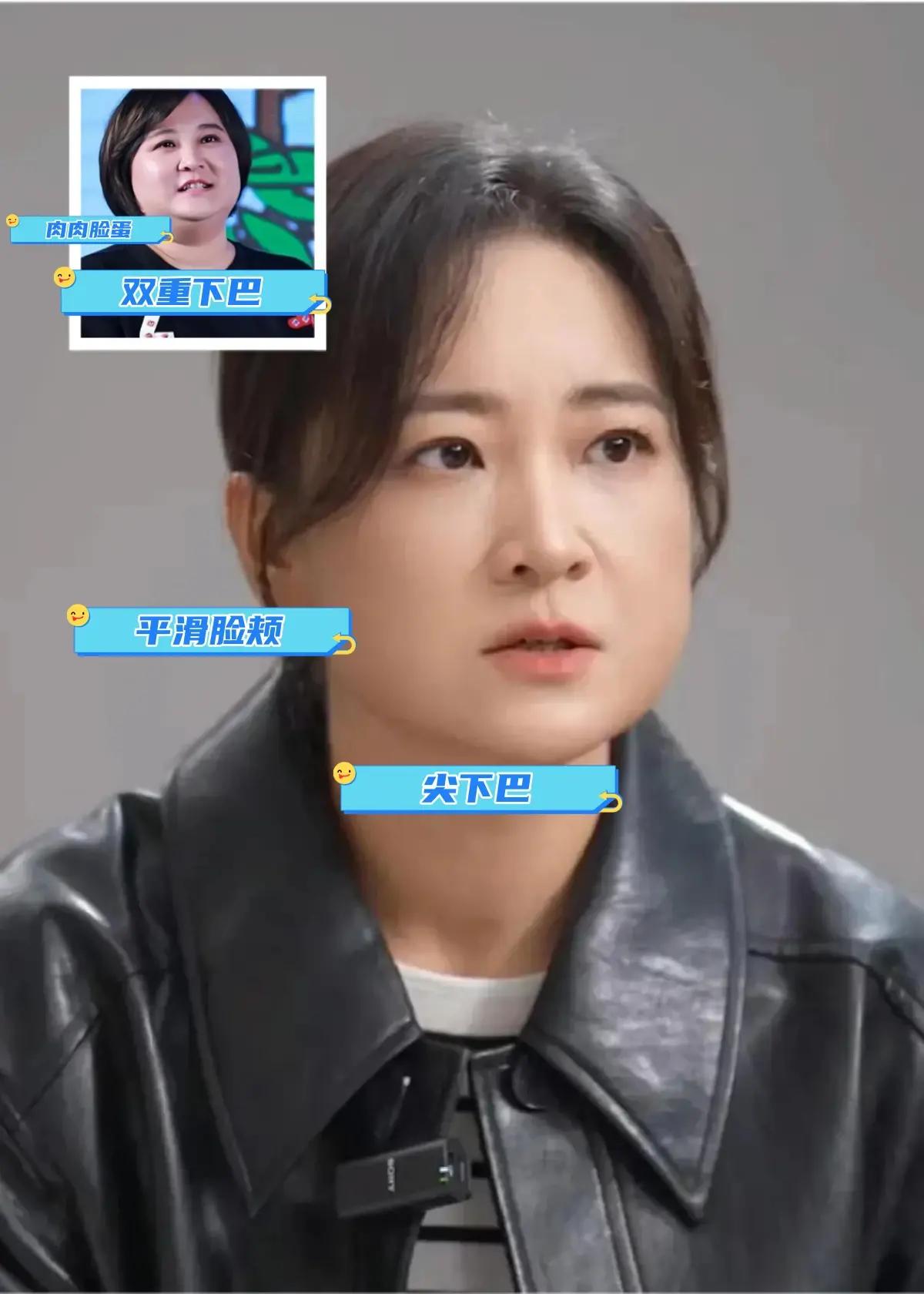 如今的賈玲已經脫胎換骨,五五分的髮型很颯爽,而且扁平的臉蛋多了幾分立體感,雖然有點小法令紋,但是一點不影響他尖尖的下巴所呈現出來的美麗輪廓,平滑的臉頰恢復了青春的印記。