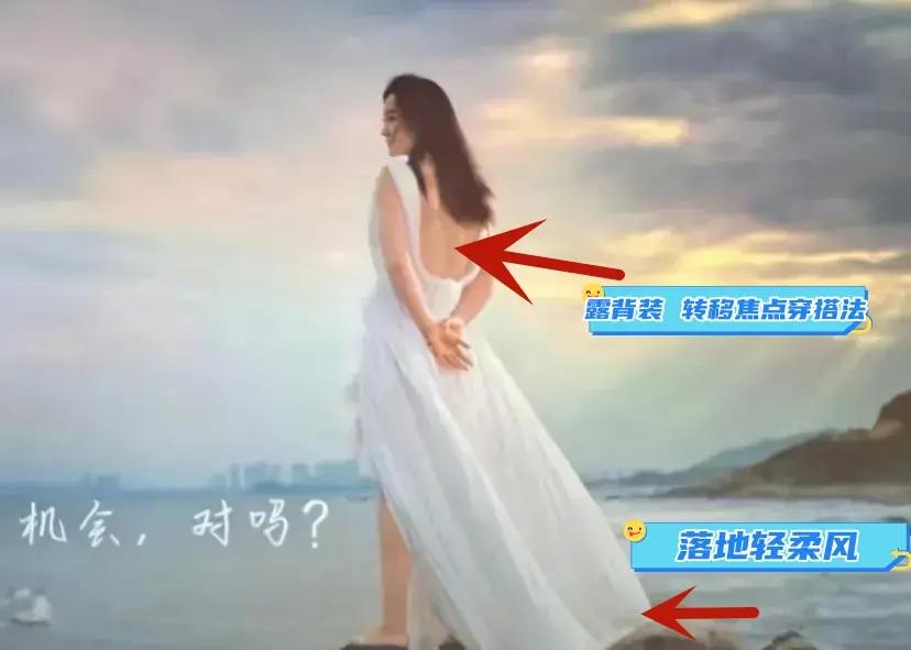 轉移焦點法,就是發現自己的優勢,遮蓋自己的身材劣勢,把所有的服裝注意力,引到自己的線條上或者曲線上,從肩部到背部,來了個巧妙轉換,好看不做過,自信又清涼。