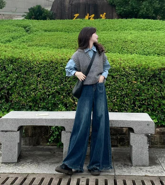 另外,牛仔褲的款式也有很多,牛仔直筒褲、微喇褲、闊腿褲、拖地褲等等,各位在挑選的時候,根據自己的穿搭風格,以及身材進行選擇就行。