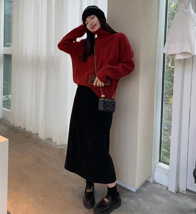 新年當然要穿紅色啦,今年本命年的姐妹更是少不了一件紅色單品,這件紅色麻花毛衣與半裙超配的,加上一雙黑色樂福鞋,這樣搭配輕鬆出街,好顯氣色。