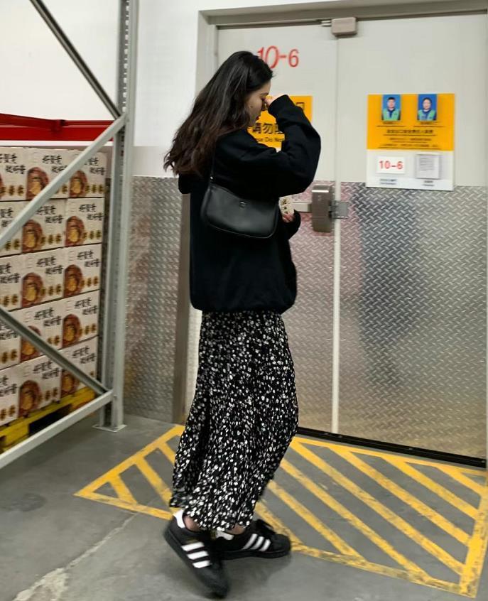 春天,真的是一個浪漫的季節啊,溫度回升後,裙子也可以肆意穿起來,充滿小清新的碎花裙,與黑色衛衣相配,一簡一繁,顯層次又時髦。