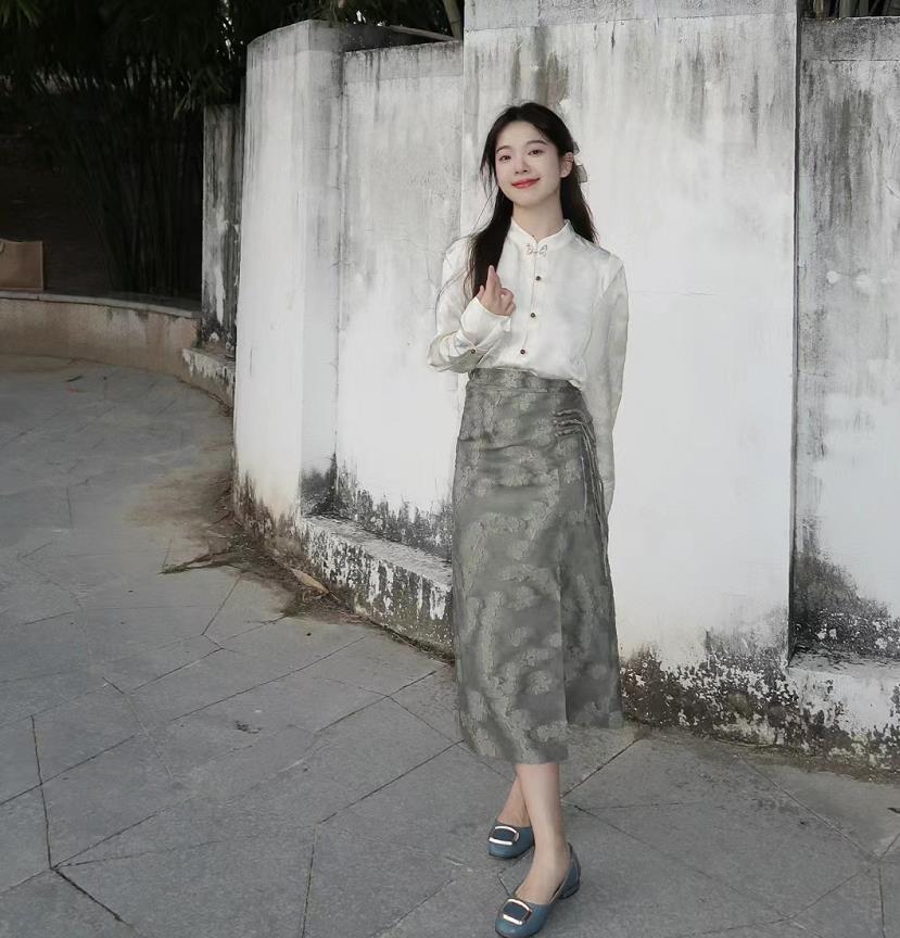 過年穿搭就選擇新中式吧,媽媽說我這一套超漂亮的,溫婉靜謐,白色的新中式襯衫,紐扣的形狀像蝴蝶般。高腰的半身長裙,將整個人的氣質都提升了起來。
