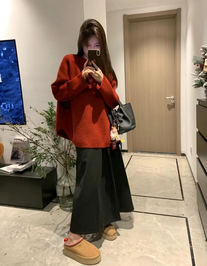 過新年的穿搭,又怎能少了紅色?哪怕是一抹小面積的紅,都可以讓你的着裝變得出挑起來。更何況是這種氛圍感十足的紅色毛衣,誰不愛?