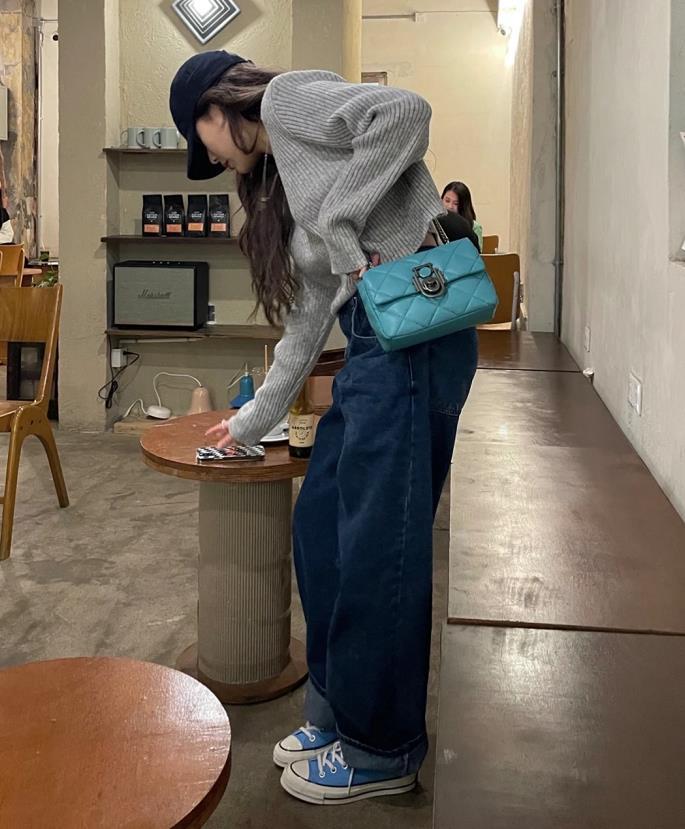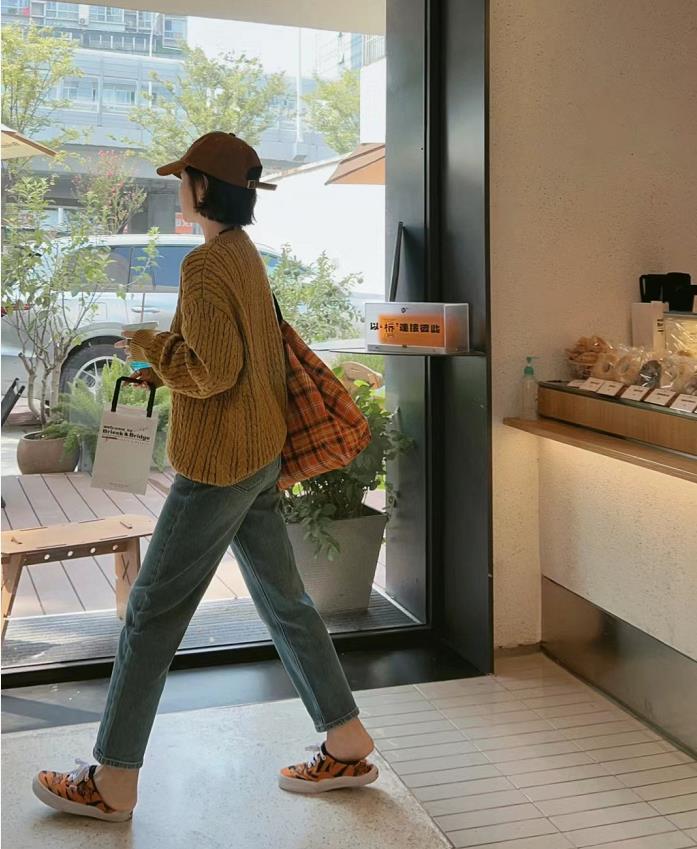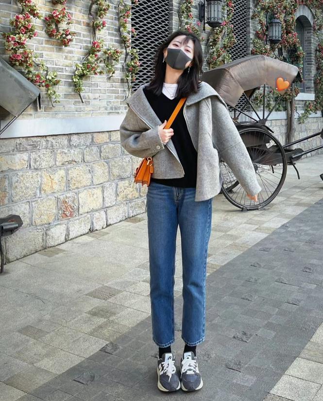 毛衣與牛仔褲的穿搭,春秋季節都很合適,看似簡單卻很時髦,就很難不愛吧,九分長度的直筒褲,顯腿直又顯瘦。