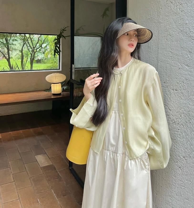 在夏天的時候,這件新中式小開衫就可以安排起來了,緞面的質感,給人十分高級有品質的樣子。結合連衣裙,很溫柔又舒適愜意。