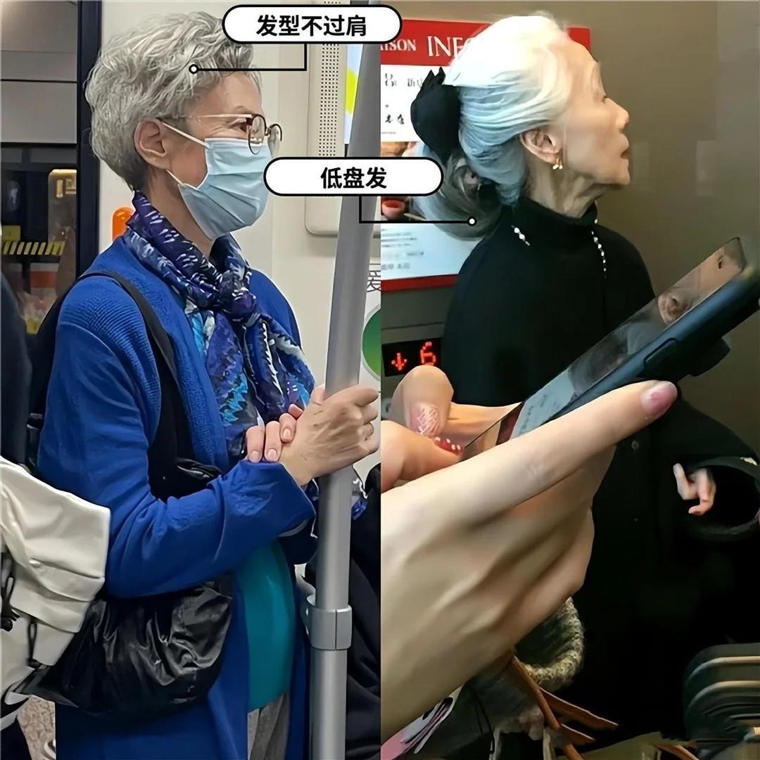 儘管追求時尚,但上海奶奶們始終保持着典雅的風格。她們堅持發不過肩,堅持白髮也自然,留出足夠的空白秀脖頸,她們喜歡選擇經典款式的服裝,如中長款直筒裙或西裝外套,展現出成熟穩重的氣質。在時尚與典雅之間找到平衡,讓她們的穿搭既具有時代感又不失優雅。