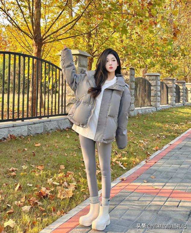一、萬萬沒想到,今年回頭率最高的穿搭居然是:短棉服+瑜伽褲
