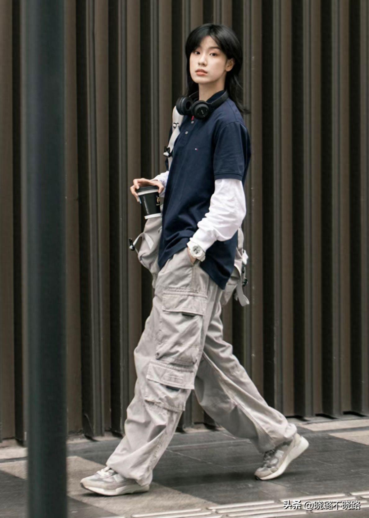當然了,上下系列兩個單品在進行組合搭配的時候,從版型上而言標準的比例狀態已經被襯托出來了,那麼這個時候我們就可以在視覺上使其更加具有強調性以及分割感強烈一些,運用對比的顏色系列最經典的當然就是黑白對比,又或者是顏色的對調。