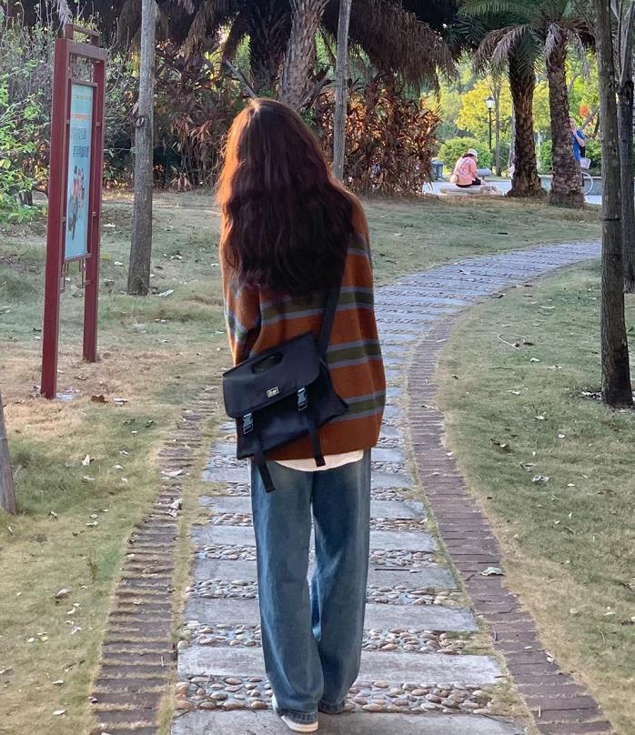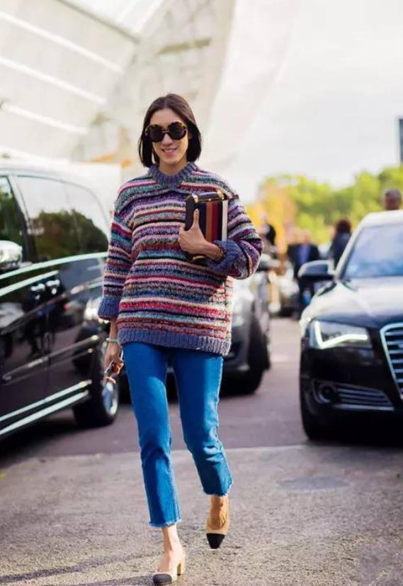 真的好喜歡這套,條紋毛衣+百搭牛仔褲,毛衣的版型很寬鬆,垂墜感也很好,面料是軟軟的很舒服。它的配色就很復古,單穿或者疊穿都不會出錯。