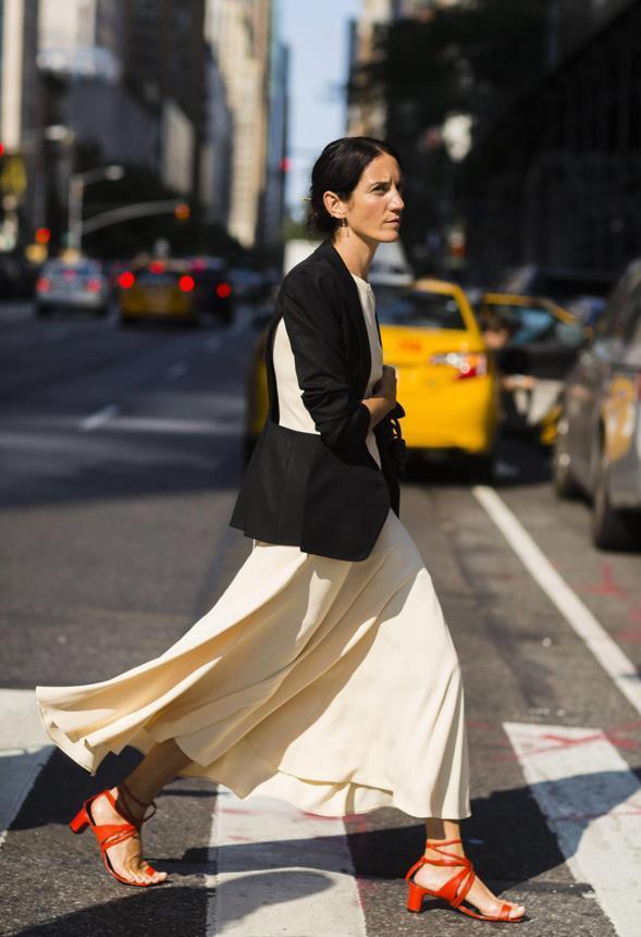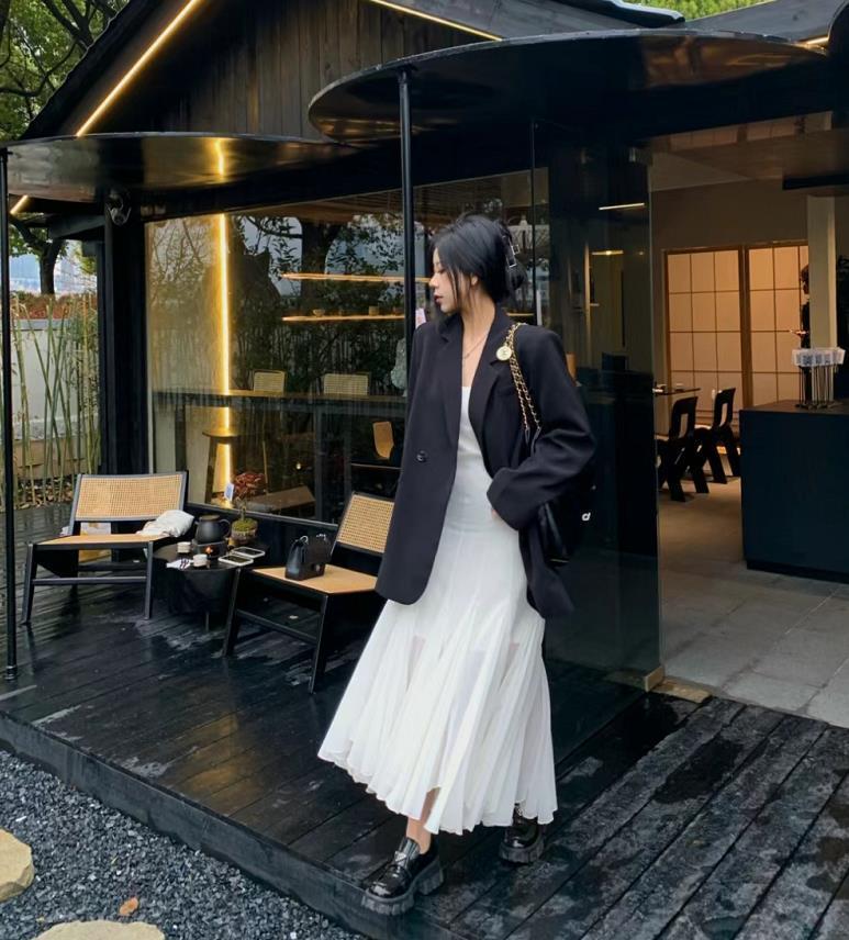 因爲小白裙的加入,很好將黑色西裝帶來的嚴謹與呆板緩解了不少。