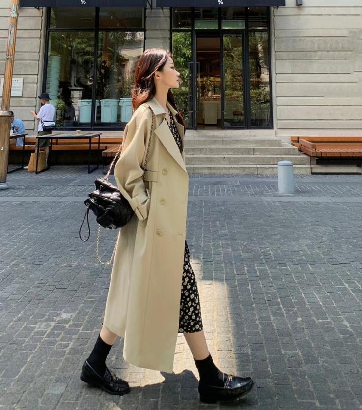 卡其色的風衣,在春秋季節都可以肆意穿起來,特別是不溫度不穩定的早春,選一件風衣+碎花裙就足夠了。