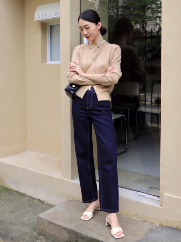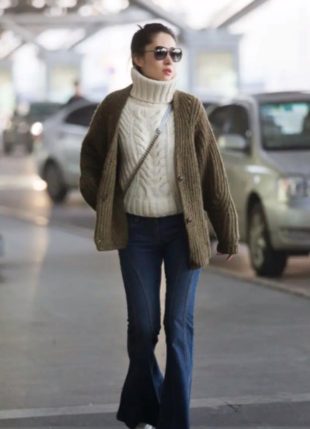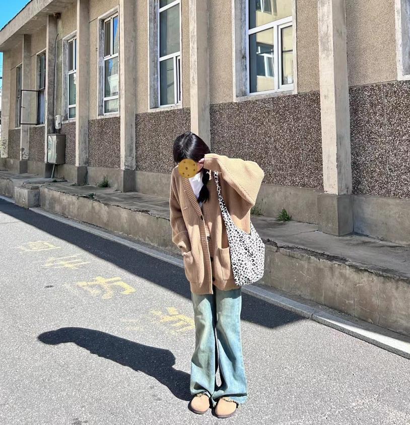 毛衣開衫+牛仔喇叭褲,這一套看起來就好韓啊,喜歡這種鬆弛感的着裝,感覺真的很時髦隨性,隨便踩着一雙勃肯鞋就出門吧。