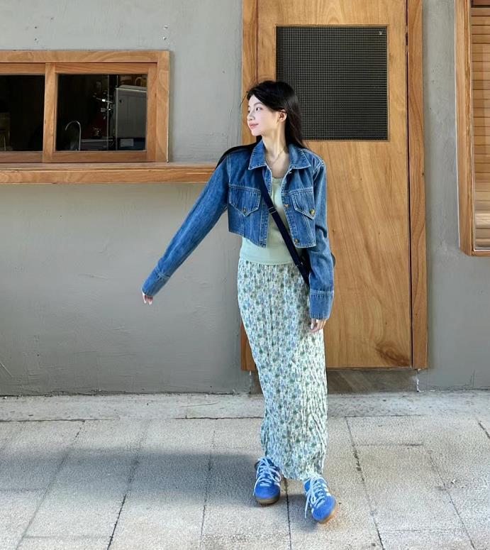 開春,被牛仔外套+碎花裙給治癒了,整體的範瞧着很清爽乾淨,少女感十足,短款牛仔外套,上身輕鬆拉長身材比例,這對於小個子女生就十分友好。