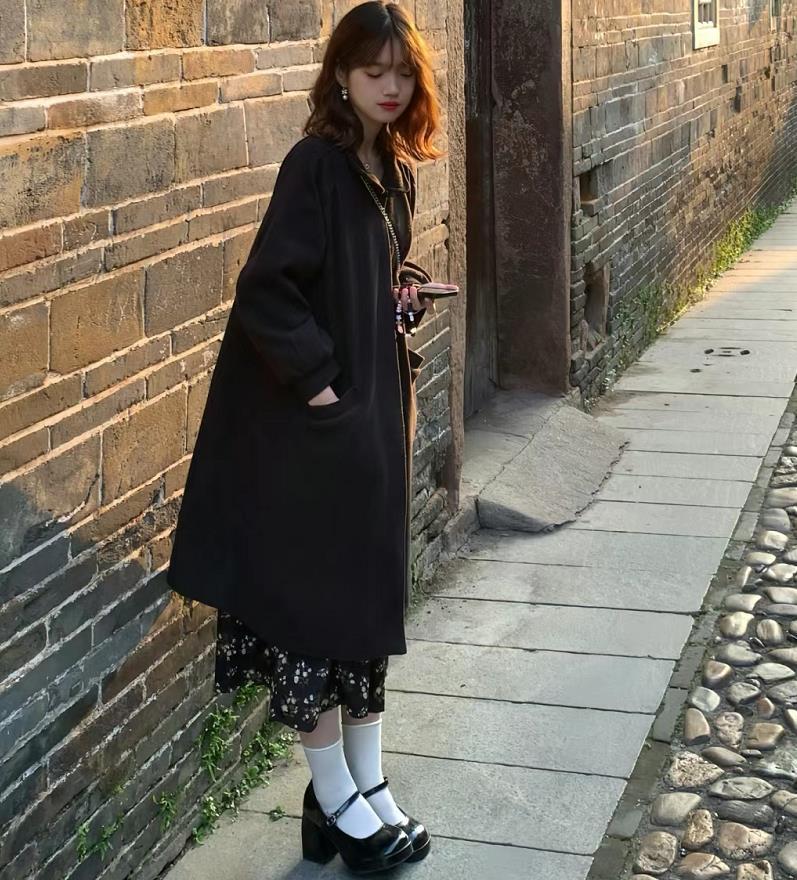 碎花裙外搭黑色大衣也太有範了,一整個被甜美住了,頗有韓範氛圍感的穿搭,隨便拍照也很上鏡,約會逛街兩不誤。